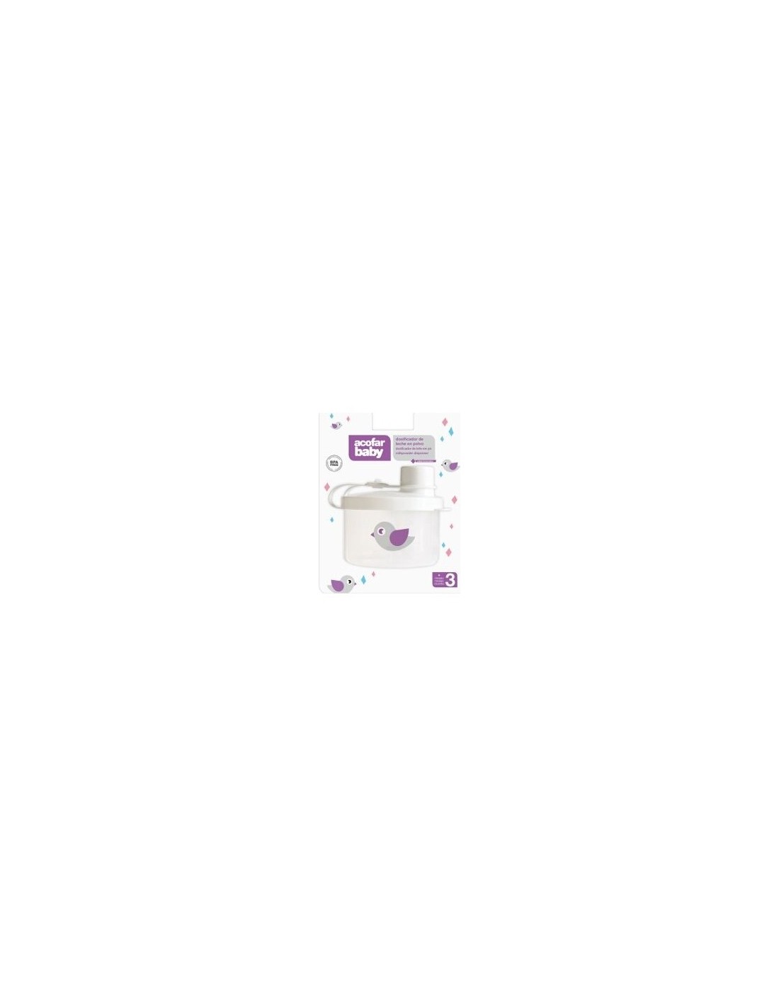 ACCIÓN Y DESCRIPCIÓNEl dosificador de leche en polvo es ideal para usar en casa o fuera de ella, permitiéndole transportar cómodamente las cantidades necesarias para la alimentación de su bebé.