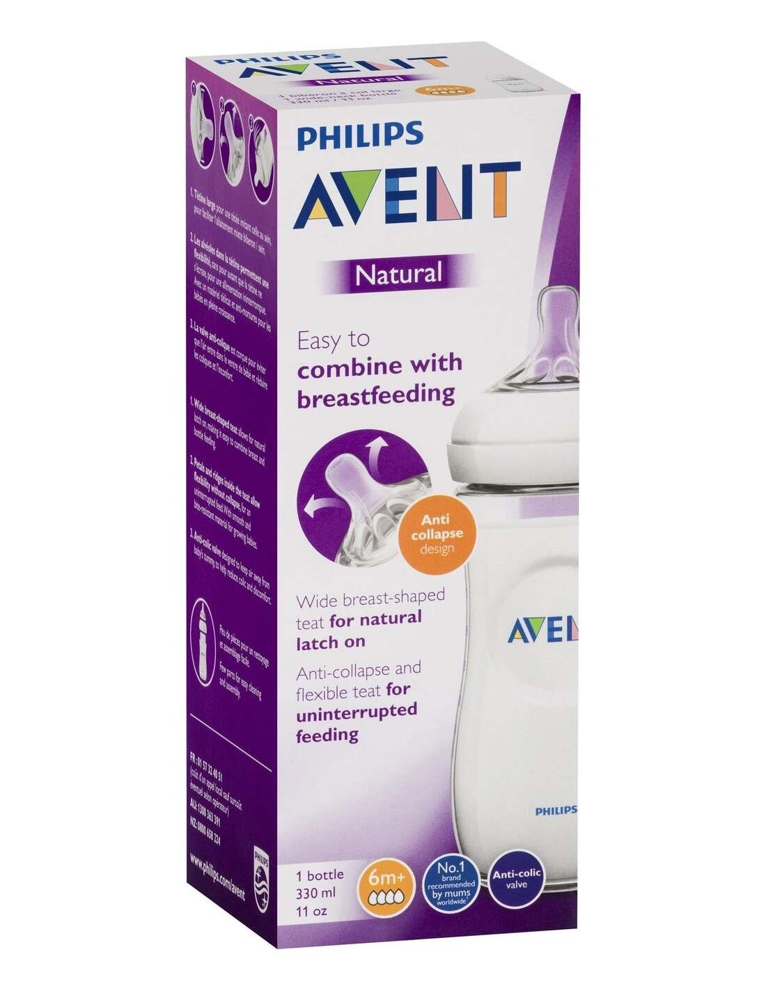 La tetina ancha similar a la forma del pecho facilita un enganche natural similar al del pecho, y permite al bebé combinar la alimentación con pecho y biberón.