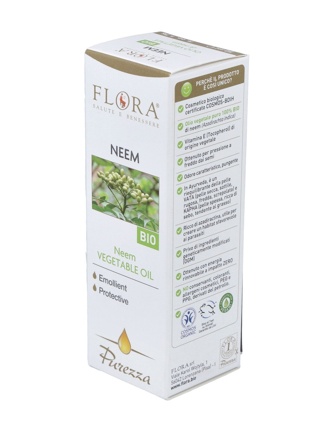 Es un óptimo aceite vegetal cosmético para el cuidado de la piel. Rico en compuestos fenolicos y sulfurosos, de ácidos grasos polinsaturados y monoinsaturados desarrolla una acción hidratante, protectora, regenerante, eudérmica y restructurante para la piel. Gracias a la presencia de azadiractina, un tetranortriterpeno presente en las semillas, el aceite de Neem es también utilizado para el cuidado de las plantas y los animales de los ataques de los parásitos creándoles un hábitat desfavorable .ACEITE DE NEEM antiseptico 50ml. BIO de FLORA