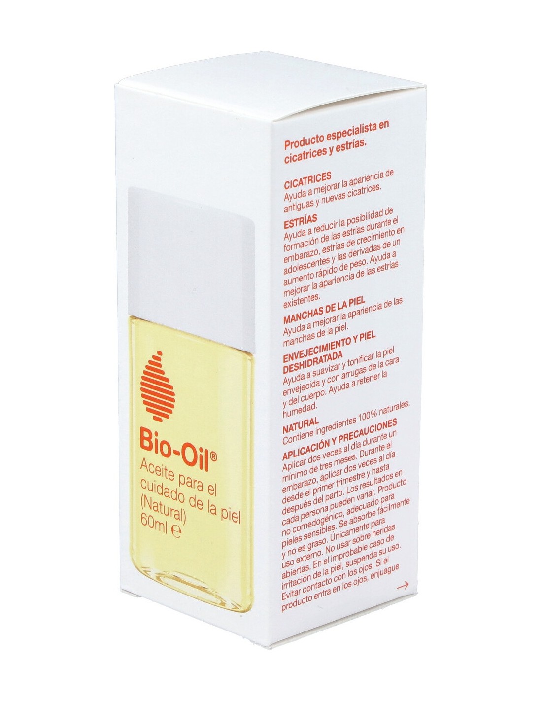 Aceite natural bio-oil, producto que resulta en una versión totalmente natural de la fórmula para cicatrices y estrías original. El aceite ecológico está diseñado para el cuidado de la piel especialista en cicatrices y estrías elaborado con ingredientes 100% naturales. Ayuda a mejorar la apariencia de las cicatrices antiguas y nuevas. Las cicatrices son una parte integral del proceso de curación y son el resultado de una sobreproducción de colágeno en el lugar de la herida. Además, reduce la posibilidad de formación de las estrías durante el embarazo, estrías de crecimiento en adolescentes y las derivadas de un aumento rápido de peso.