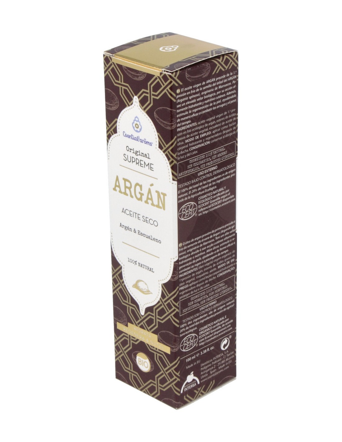 Aceite vegetal virgen de 1ª presión en frío ecológico de argán*, esteres de ácidos grasos de aceite vegetal, escualeno de aceite de oliva.