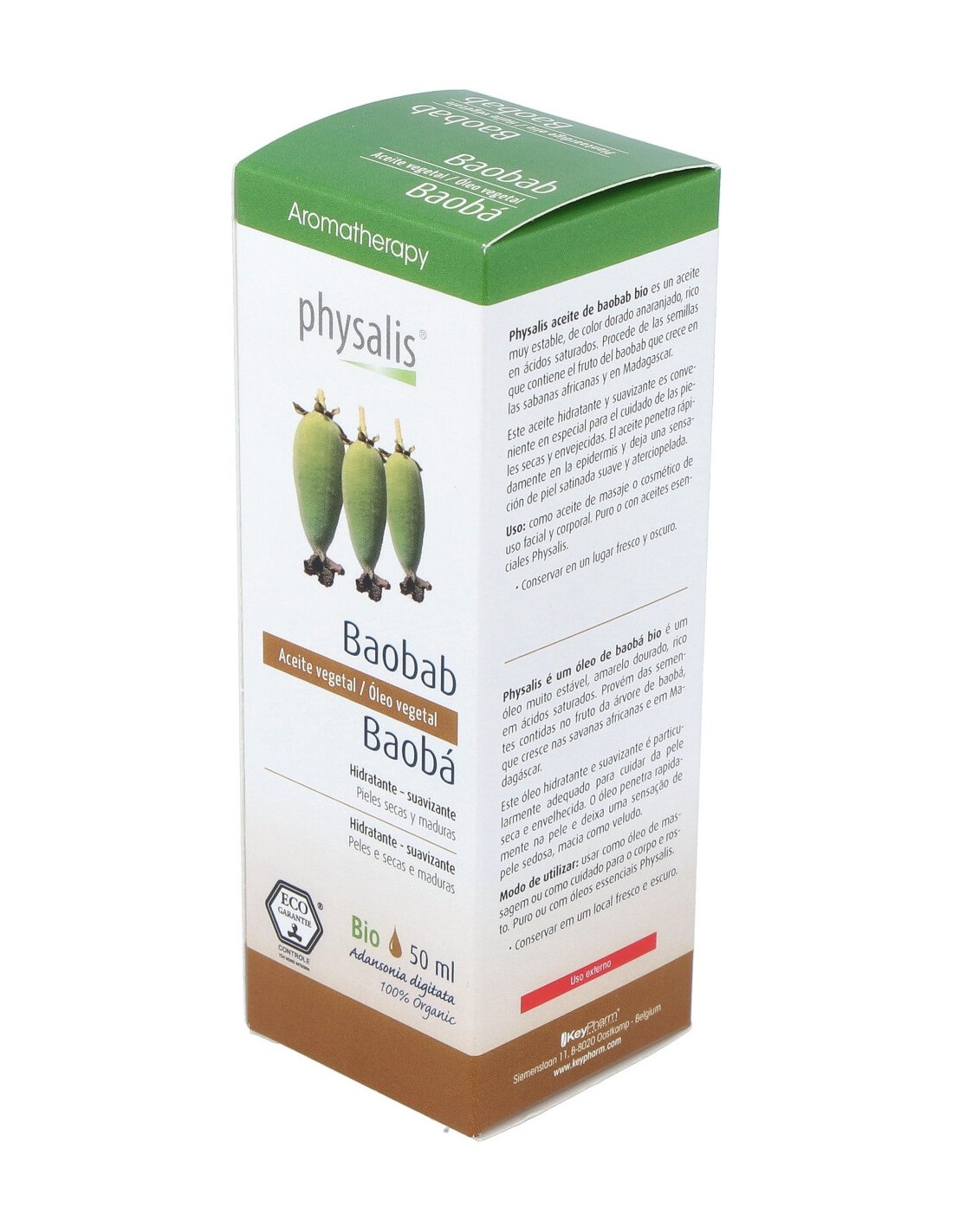 Como aceite de masaje o cosmético de uso facial y corporal. Puro o con aceites esenciales Physalis.