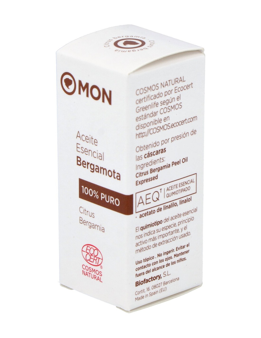 El aceite esencial bergamota se utiliza para aplicar en masaje produciendo efectos, antidepresivos y sedantes. Su acción aromática actúa como relajante y refrescante. Tiene una acción reconfortante, elevadora del estado de ánimo y a la vez equilibrante. El Aceite esencial de Bergamota en aromaterapia es un efectivo antídoto contra la depresión. Son también conocidas sus propiedades analgésicas, antisépticas y antibacterianas. Actúa como febrífugo ante los síntomas gripales. No ingerir. Evitar el contacto con los ojos. Mantener fuera del alcance de los niños.