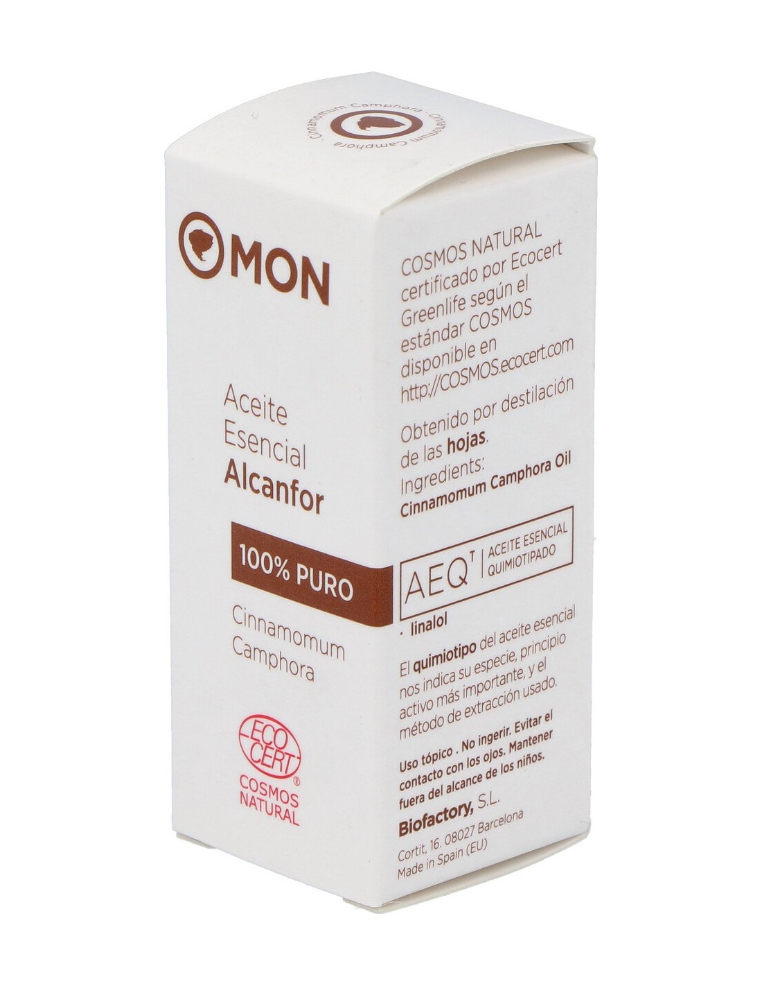Aceite esencial 100% puro de Cinnamomum camphora, obtenido por destilación al vapor de las hojas. Con alcanfor como principio activo.
