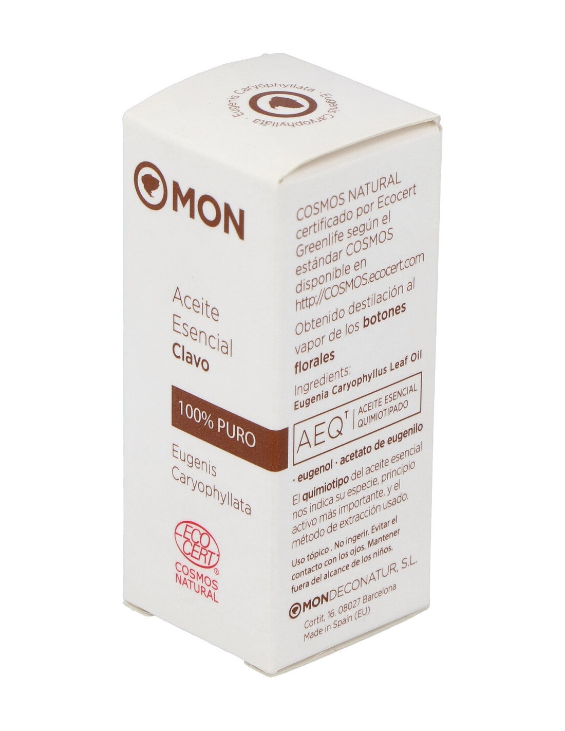Aceite esencial 100% puro de Eugenis Caryophillata, obtenido por destilación al vapor de los botones florales. Con Eugenol, Acetato de eugenilo como principio activo.