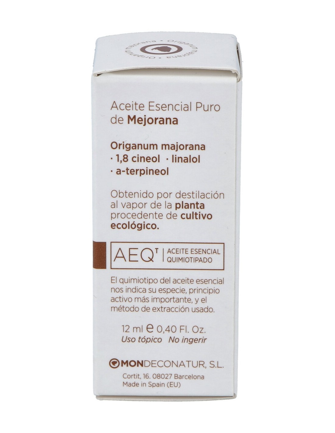 Mon Aceite Esencial Mejorana 12ml es un aceite esencial de Mejorana, la esencia se obtiene por destilación de la planta y sus principios activos predominantes son 1.8 cineol, linalol y a-terpineol.