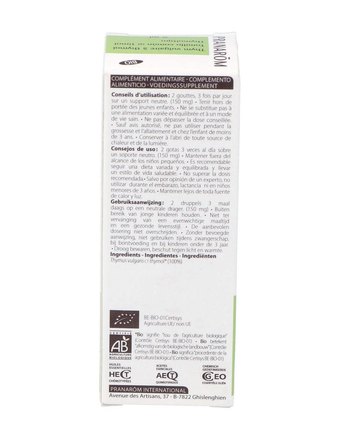 Pranarôm Bio Aceite de Tomillo Común QT Timol 5ml es un aceite que contribuye a aliviar el dolor de estómago causado por problemas digestivos.