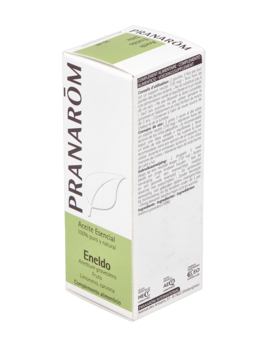 Este aceite esencial está elaborado a partir de eneldo, más conocida por su uso culinario, pero también con propiedades terapéuticas. Ayuda a aliviar problemas respiratorios, resfriados o prevenir contagios gracias a sus propiedades mucolíticas y expectorantes. También se suele utilizar para favorecer la digestión y el tránsito intestinal.