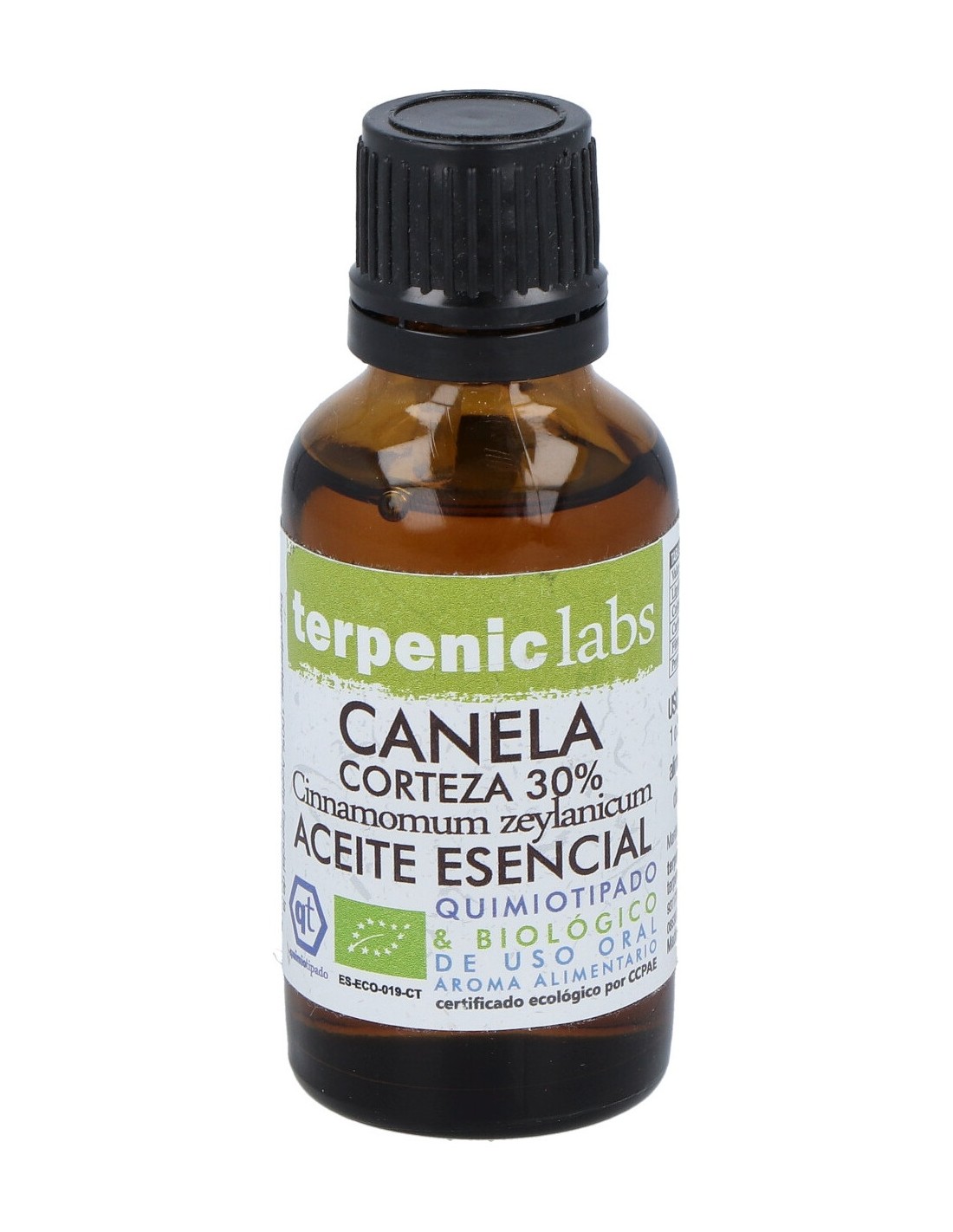 Aceite esencial de Canela corteza al 30%. El producto es 100% extracto natural de cinnamomum zeylanicum. Aceite esencial quimiotipado 100% natural, puro e íntegro. Facilita distintas propiedades: eficaz contra todas las bacterias, gérmenes y hongos en enfermedades infecciosas: angina, bronquitis, así como para los resfriados y los escalofríos. De uso local sobre las infecciones fúngicas del tipo pie de atleta, así como sobre los dolores de artrosis, el reumatismo.