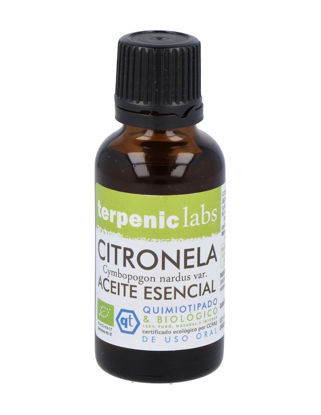 Aceite esencial bio 100% puro de Cymbopogon winterianus (QT. citronelal) de Java, obtenido de las hojas.