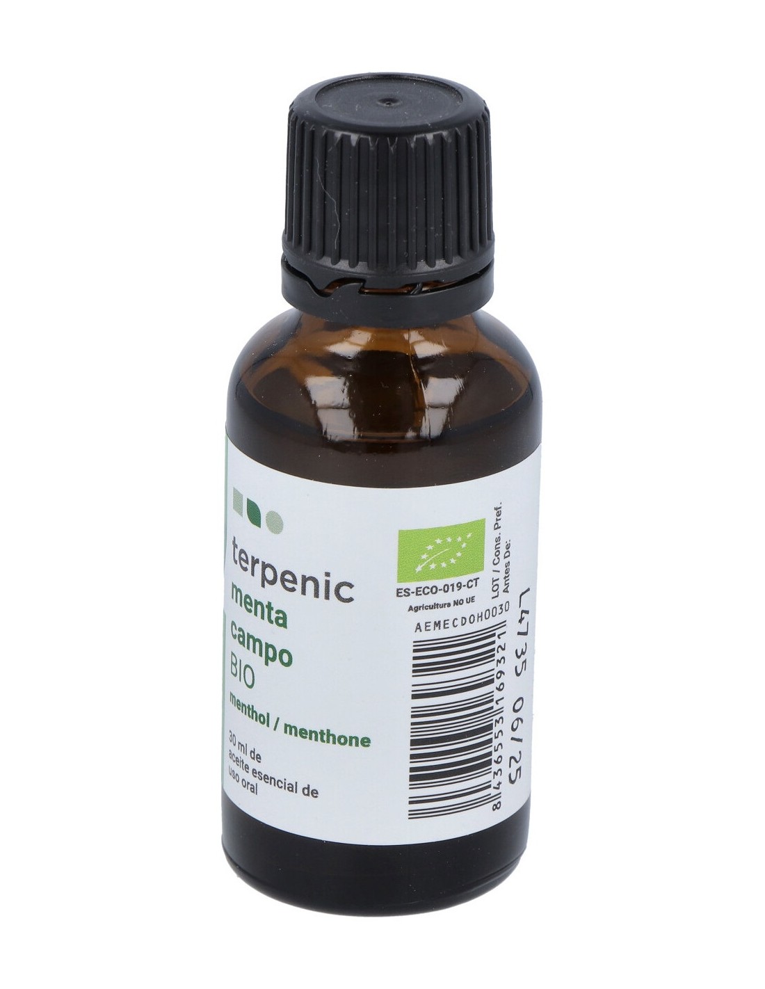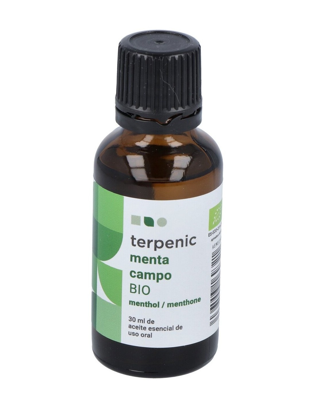 Aceite esencial de Menta de campo. El producto es 100% extracto de planta natural, el cual contiene ecoetiqueta que certifica el origen ecológico dentro de la unión europea. Facilita propiedades diferentes: Tónico, estimulante, analgésico, tónico, digestivo, tónico cardíaco, antipruriginoso, antibacteriano. Además, está indicado en: Neuralgias, migrañas, cefaleas, reumatismo, tendinitis, sinusitis e hipotensión. Precauciones de uso: No emplear durante el embarazo, lactancia, niños menores de 6 años, ancianos ni en caso de epilepsia.
