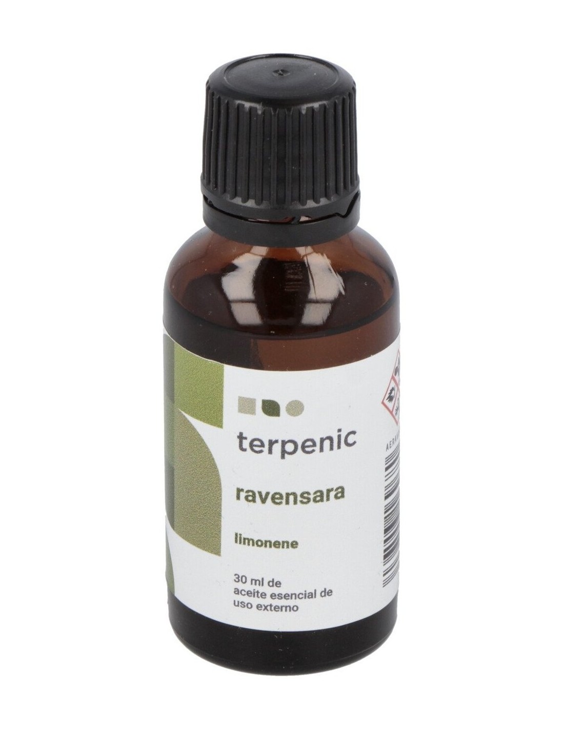 Aceite esencial de Revensara, facilita distintas propiedades: Inmunoestimulante, Neurotónico, Expectorante, Antiséptico. Recomendado para tratar: Gripe, Varicela, Bronquitis, Tos, Herpes, Artritis, Depresión. No emplear durante los 3 primeros meses de embarazo. No confundir con A.E. de Ravintsara.