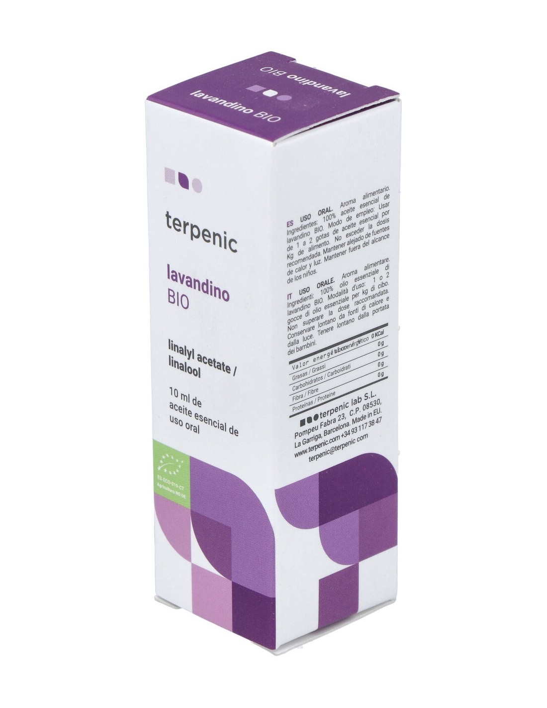 Aceite esencial bio 100% puro de Lavandula hybrida (QT. acetato de linalilo, linalol) de Francia, obtenido de la planta entera.