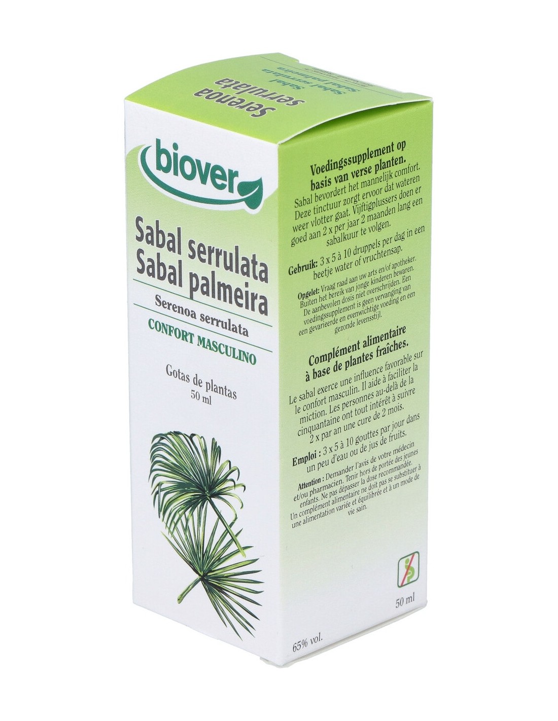 El sabal sostiene el confort masculino. Estas gotas ayudan a facilitar la producción urinaria. Se recomienda a las personas de más de 50 años una cura de 2 meses, 2 veces al año.EXT. SABAL SERRULATA (sabal) 50ml. de BIOVER está disponible en nuestra web.