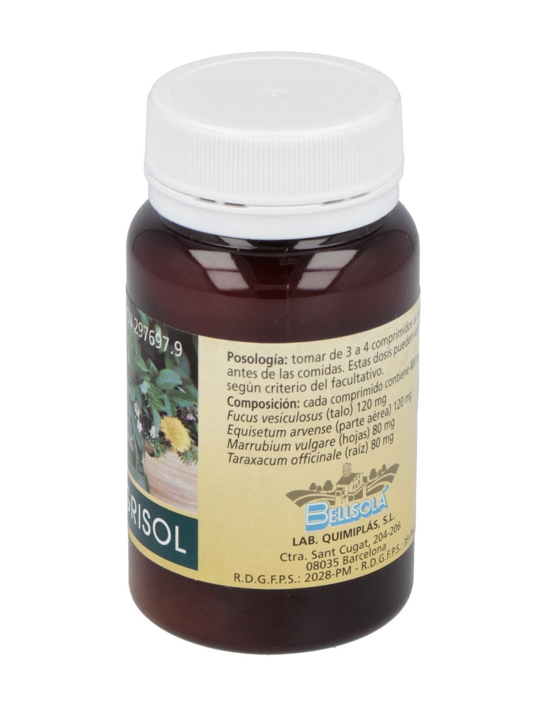 Fucus Vesiculosus (30%), Marrubio (20%), Cola de Caballo (20%), Diente de León (30%), Agentes de Recubrimiento, Aglomerantes.