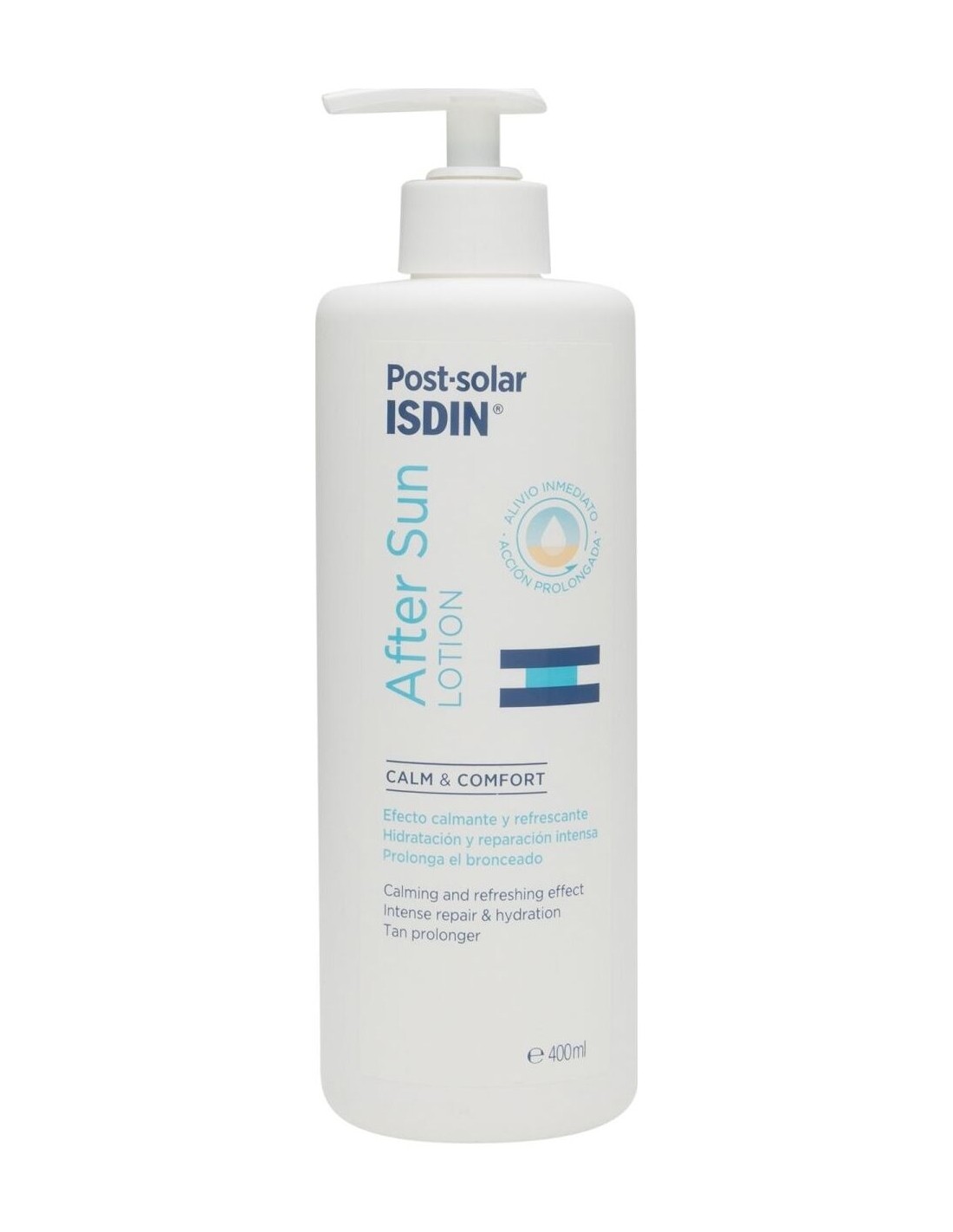 After Sun ISDIN® loción post solar 400ml está específicamente indicado para tratar la piel tras la exposición solar, tanto si tiene muestras de irritación, como si aparentemente no ha sufrido ningún daño.