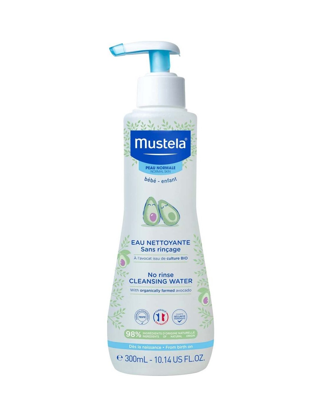 · Agua limpiadora a base de extractos de aguacate y aloe vera, que está indicada para eliminar suave y eficazmente las impurezas de la cara y las nalgas del bebé, sin la necesidad de aclarado.