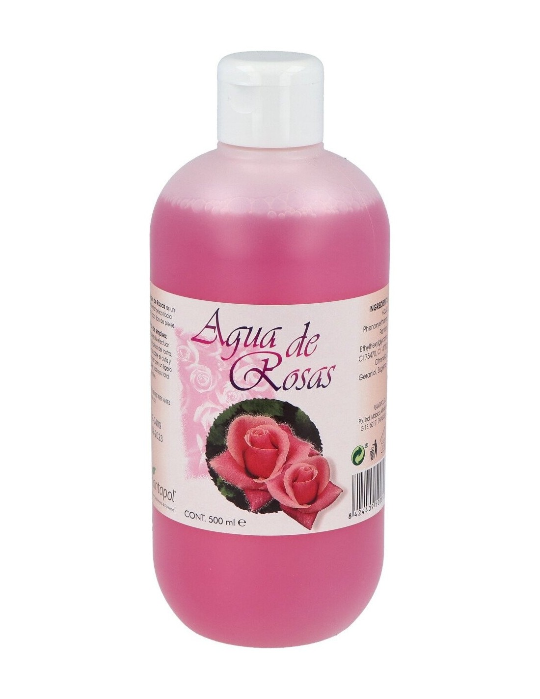 Tónico de agua de rosas, que también contiene geranio, citronela y perfume, que es procedente de la destilación de las rosas, o la solubilización de la esencia de rosas. Está especialmente indicado en pieles grasas con poros abiertos, gracias a sus propiedades calmantes, tonificantes, relajantes e incluso astringentes, y también como tónico facial y desmaquillante para todo tipo de pieles. Ayuda a tonificar, rejuvenecer, cicatrizar y suavizar las manchas de la piel y las estrías.