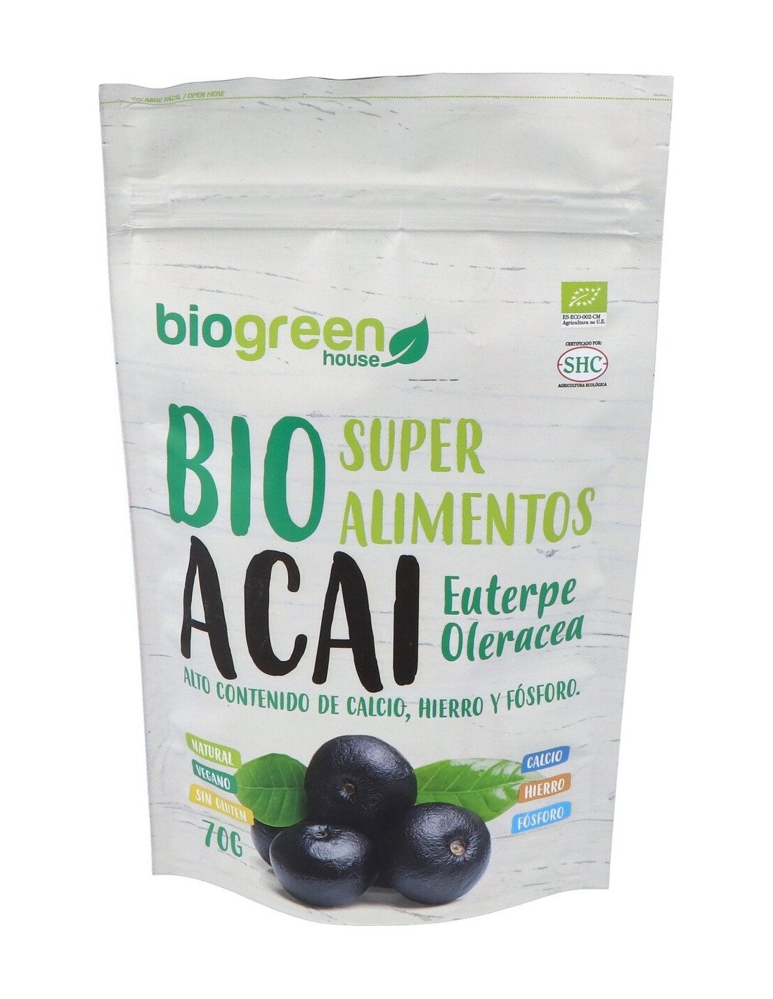 Açai en polvo, fruto repleto de vitaminas, proteínas, fibra, aminoácidos, grasas monoinsaturadas saludables y hasta 30 veces más antioxidantes que el vino tinto. Ayuda a estimular la energía, fortalece el sistema inmunitario, ayuda al crecimiento muscular y reduce los efectos del envejecimiento.