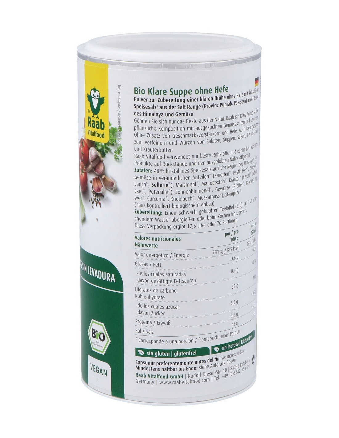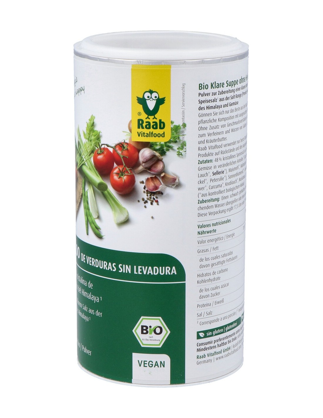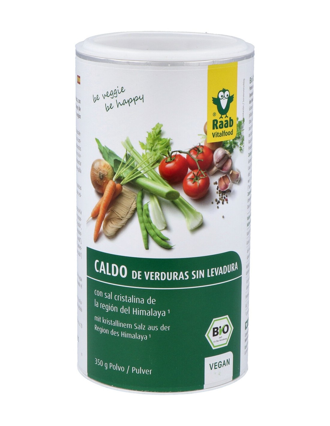 Polvo para la preparación de un caldo vegetal sin levadura con sal cristalina. Apto para veganos.