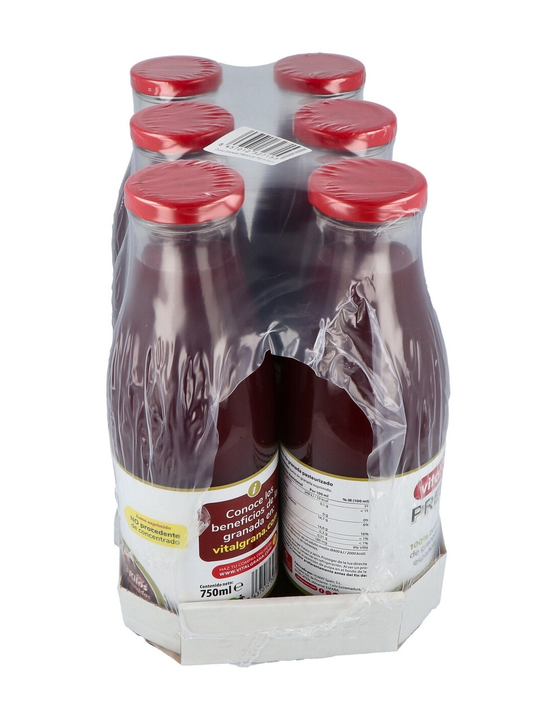Zumo de granada 100% ecológico y producido con respeto del medio ambiente. Elaborado con granadas cosechadas a mano, con grandes propiedades antioxidantes. Es una fruta rica en ácido fólico, vitamina C, fibras, hidratos de carbono, agua y potasio. Contiene betacarotenos que ayudan a proteger la piel de los factores externos y favorecen un bronceado sano y natural. Listo para consumir. Apto para toda la familia.
