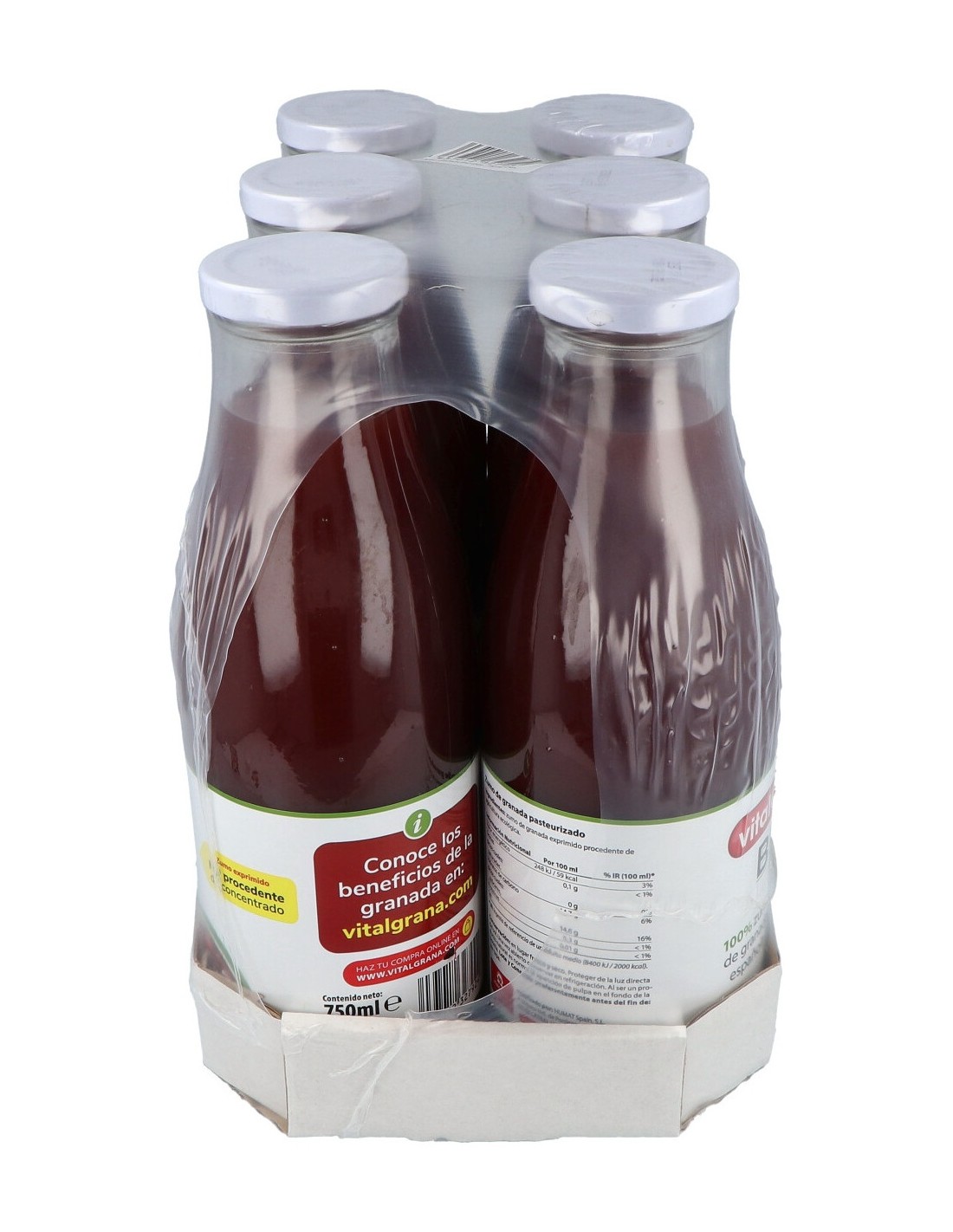 Zumo de granada 100% ecológico, obtenido de granadas cultivadas en el levante español y con un proceso de producción totalmente controlado para que sea completamente natural.