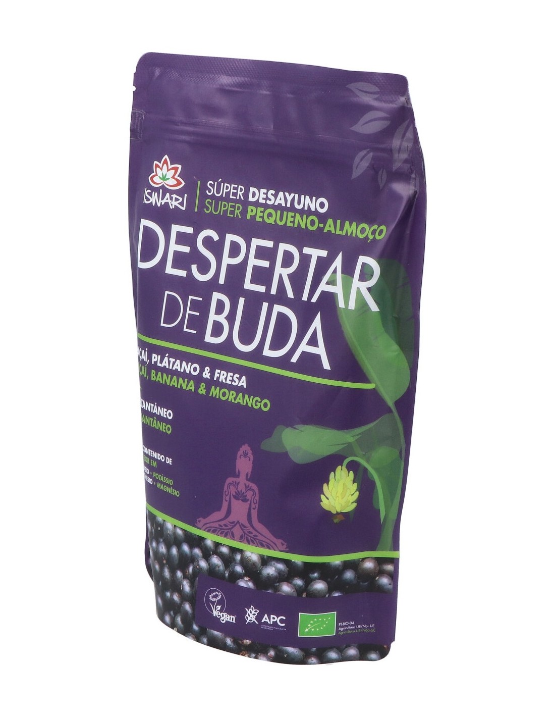 Mezcla de Buda de Açai, fresa y plátano de la marca Iswari, mezcla para un desayuno de preparación rápida e instantánea, simplemente añadiendo agua o una bebida vegetal. Esta combinación de varios ingredientes con alto contenido nutricional es la opción ideal para iluminar tu desayuno o merienda. El perfecto equilibrio entre hidratos de carbono, proteínas, grasas saludables y micronutrientes esenciales. Se puede emplear para porridges, smoothies, añadir al yogur, bowls, hacer snacks y postres saludables como galletas y barritas energéticas. Sin gluten. Contiene frutos de cáscara (almendras). Puede contener trazas de granos de sésamo, avena (sin gluten), cacahuetes y de frutos de cáscara (avellanas)