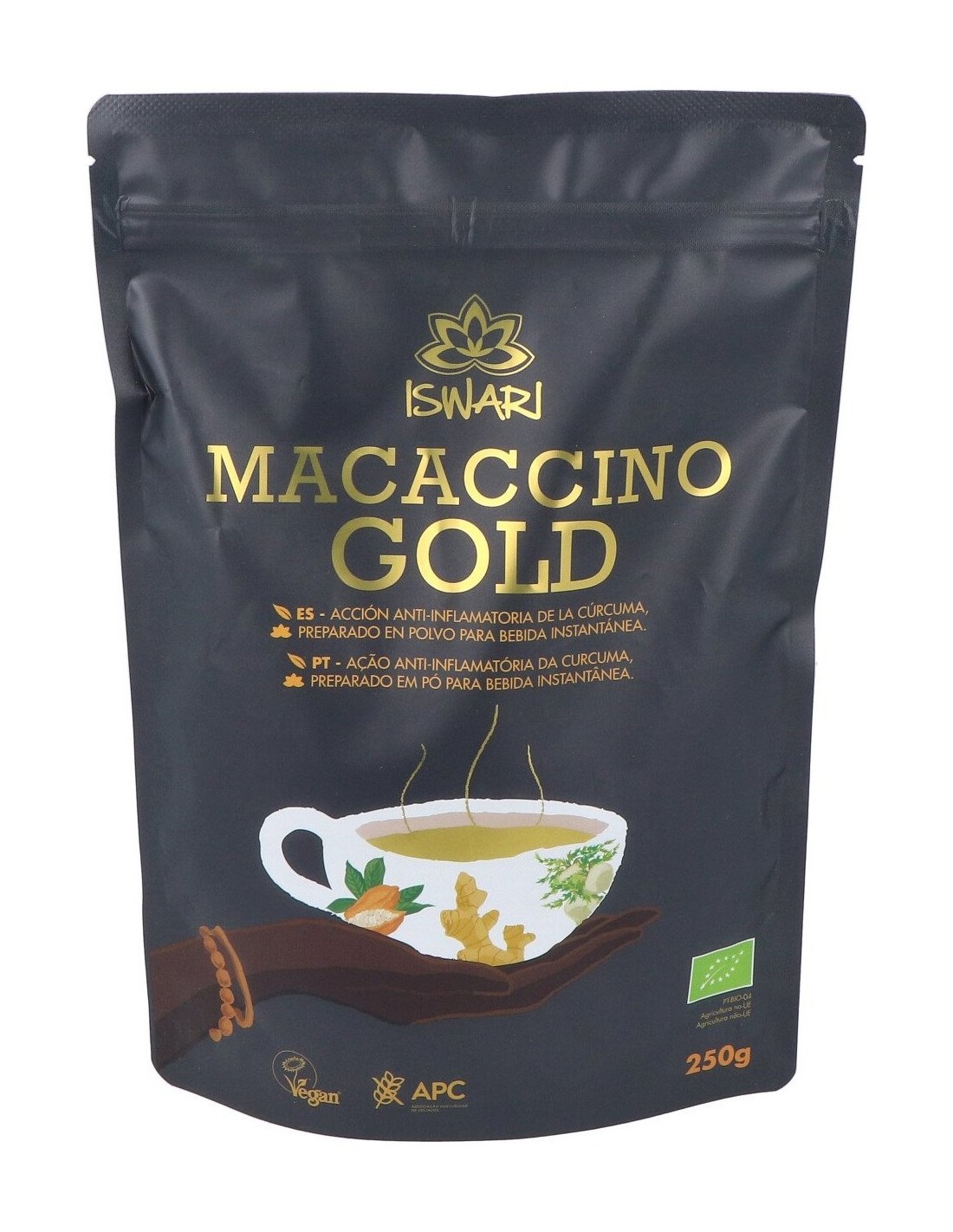 Cúrcuma (cúrcuma larga, raíz) (35%), azúcar de coco, maca, harina de amaranto, harina de plátano, lúcuma, canela y pimienta negra en polvo.