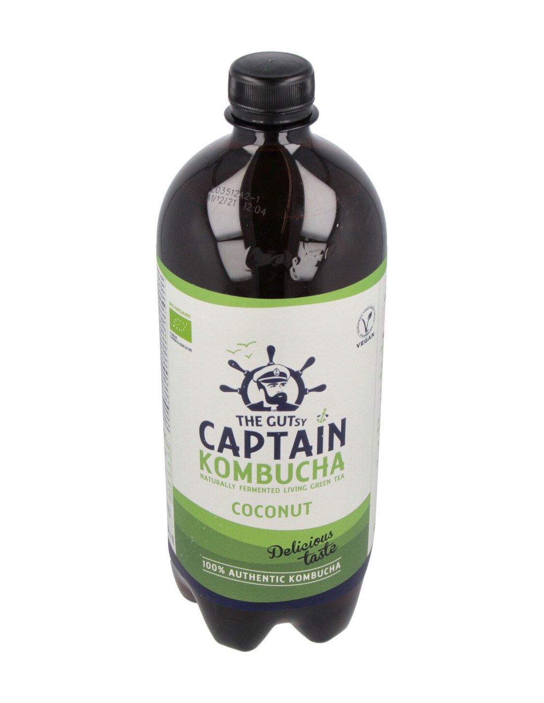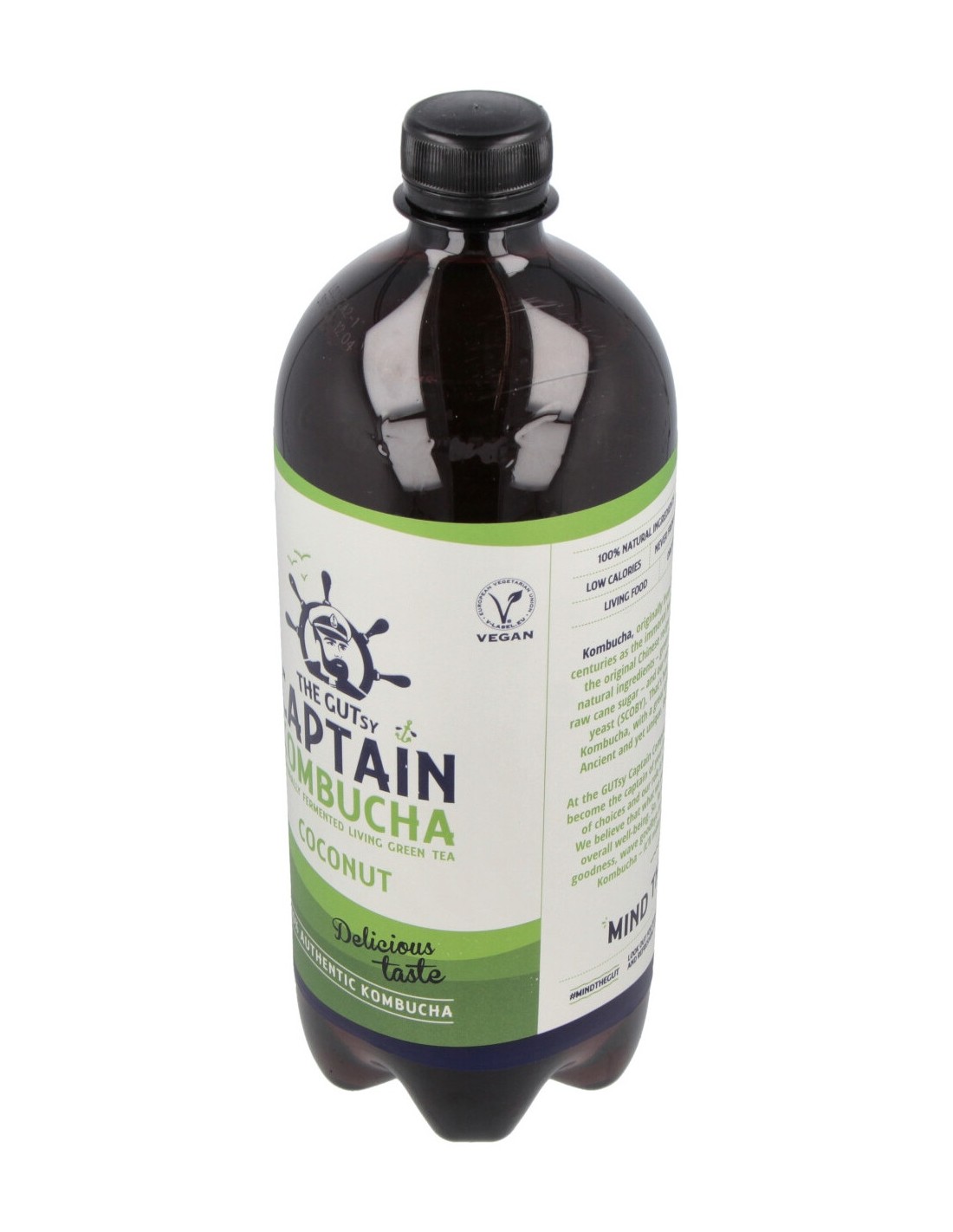 Agua filtrada, zumo de azúcar de caña evaporado (azúcar de caña fermentado), dióxido de carbono, té verde procedente de agricultura ecológica, 0,004% fermentos (bacterias y levaduras), coco procedente de agricultura ecológica 0,001%, procedente de agricultura ecológica (zanahoria, manzana, grosella negra). Agua filtrada por ósmosis inversa.