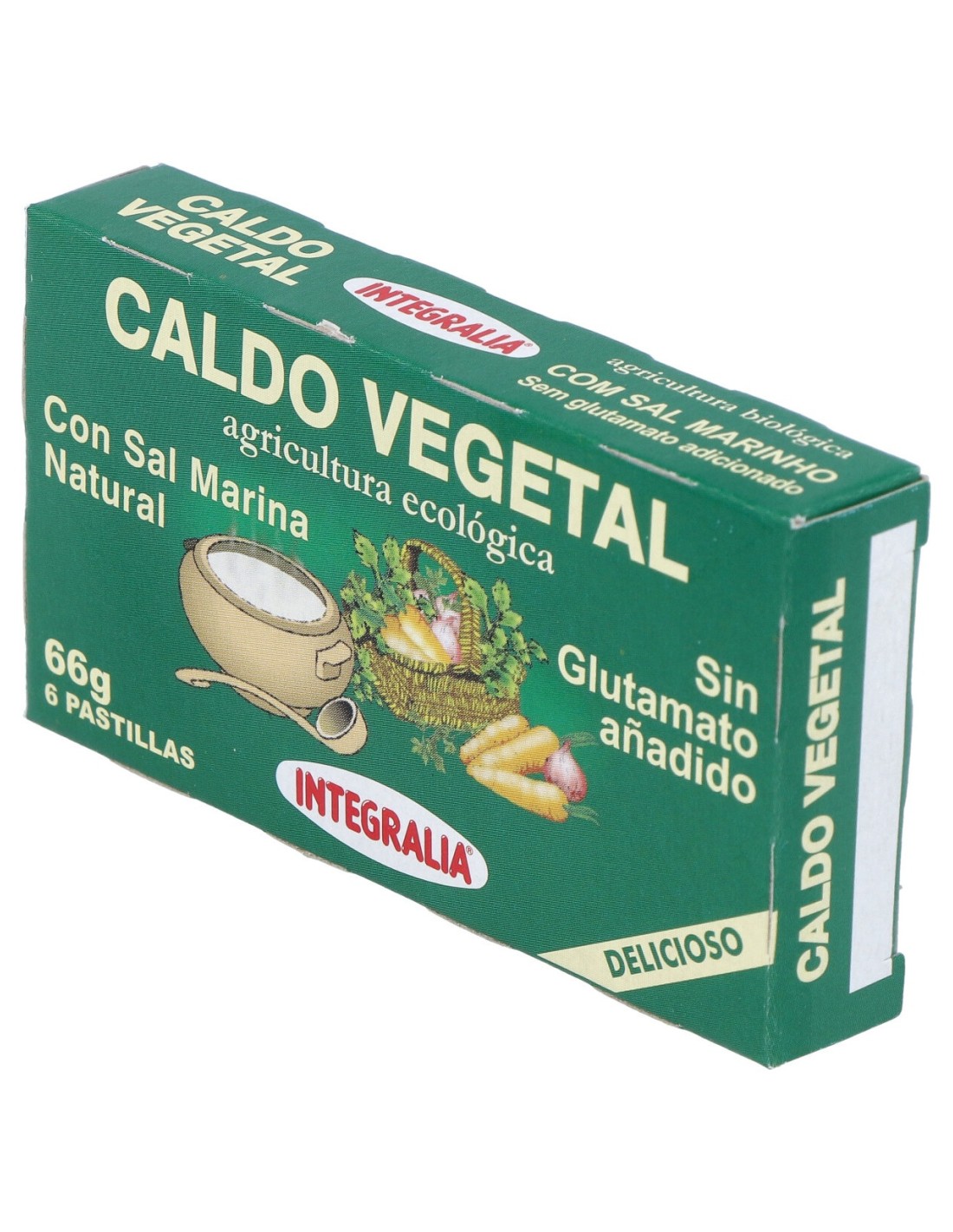 Caldo vegetal de Integralia para completar toda clase de platos y sopas, sin la necesidad de agregar otros aditivos o especias a la preparación. Contiene sal natural y 6 cubitos de verduras deshidratadas, por lo que combina perfectamente con otros guisos y caldos. El proceso de este caldo vegetal se lleva a cabo bajo una agricultura ecológica, por lo que durante su fabricación se cuida el uso de los recursos hidráulicos y la utilización de los residuos. Los cubitos de verduras deshidratadas no contienen glutamato, por lo que su sabor es únicamente natural y similar al de las verduras convencionales. Este caldo vegetal es de un total de 66 gr. Se recomienda conservarlo en un lugar fresco, libre de humedad. Integralia recuerda la importancia de mantener una dieta equilibrada y un estilo de vida saludable.