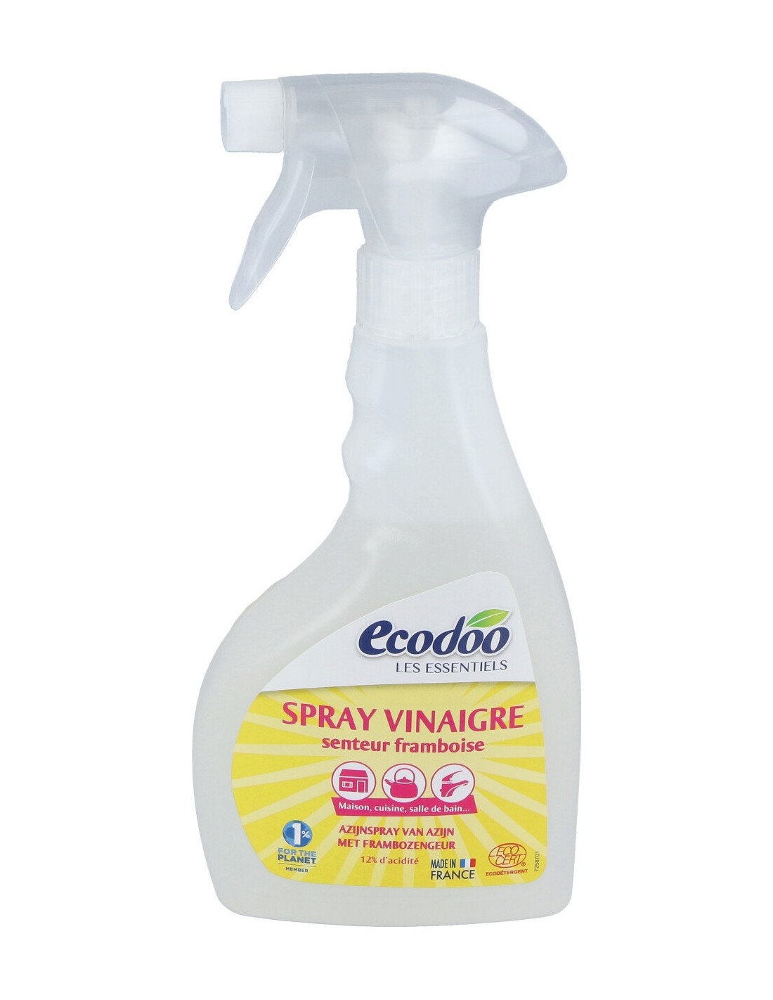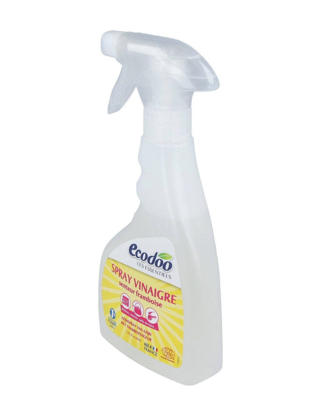 Vinagre blanco, 12% de acidez, con agradable olor a frambuesa, con certificado EcoCert. Ecológico y económico, en formato rellenable, para las superficies de difícil acceso. Un único producto para diferentes usos: elimina los restos de cal, limpia las ventanas, da brillo a vasos y cubiertos, reemplaza el suavizante, desinfecta electrodomésticos, inodoros, superficies de cocina y baño y elimina malezas.