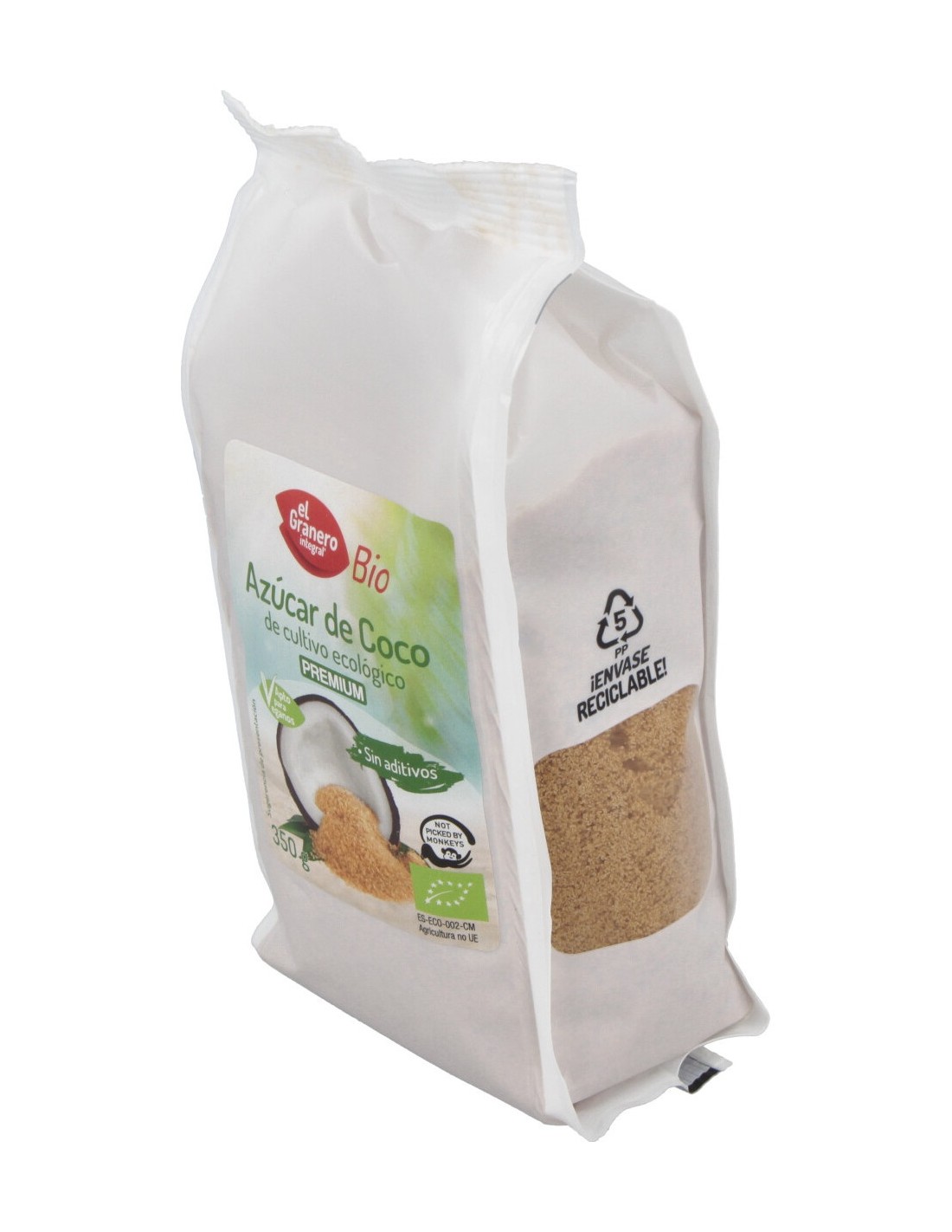 Azúcar de Coco integral, una buena alternativa al azúcar blanco o otros endulzantes. Su bajo nivel glucémico ayuda a controlar los niveles del azúcar en sangre y la hace apta para diabéticos aunque controlando su consumo. Contiene fósforo y calcio que favorece el crecimiento de los huesos, además de potasio que mejora la actividad muscular y es una fuente natural de vitaminas B1, B2, B3, B6 y C y también contiene 16 de los 20 aminoácidos esenciales.