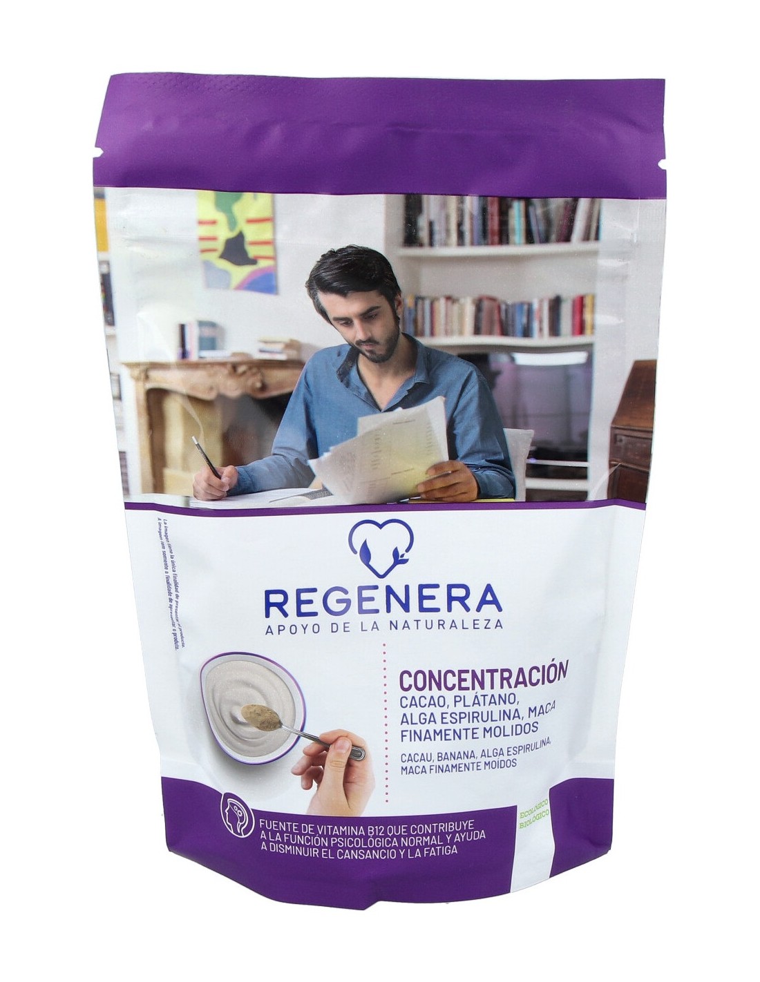 Formulado a base de ingredientes 100% naturales como cacao, plátano o alga espirulina que construyen una fuente de de vitamina B12 que contribuye a la función psicológica normal y ayuda a disminuir el cansancio y la fatiga.