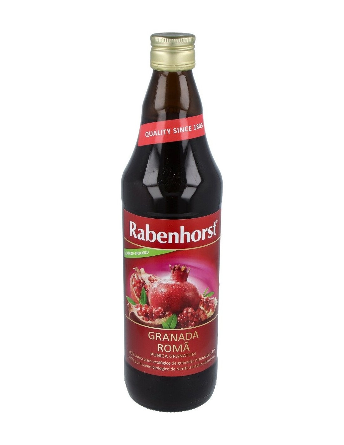 100% puro zumo de granada (Punica granatum) ecológico. Sin azúcar añadido. No procedente de concentrado.