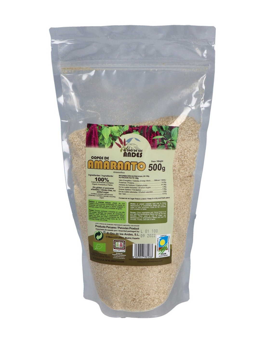 El Amaranto en copos, (Amaranthus caudatus), es una semilla tradicional andina, muy cercana a la quinoa, tiene un sabor muy fino y aromático, sus semillas también son muy pequeñas.