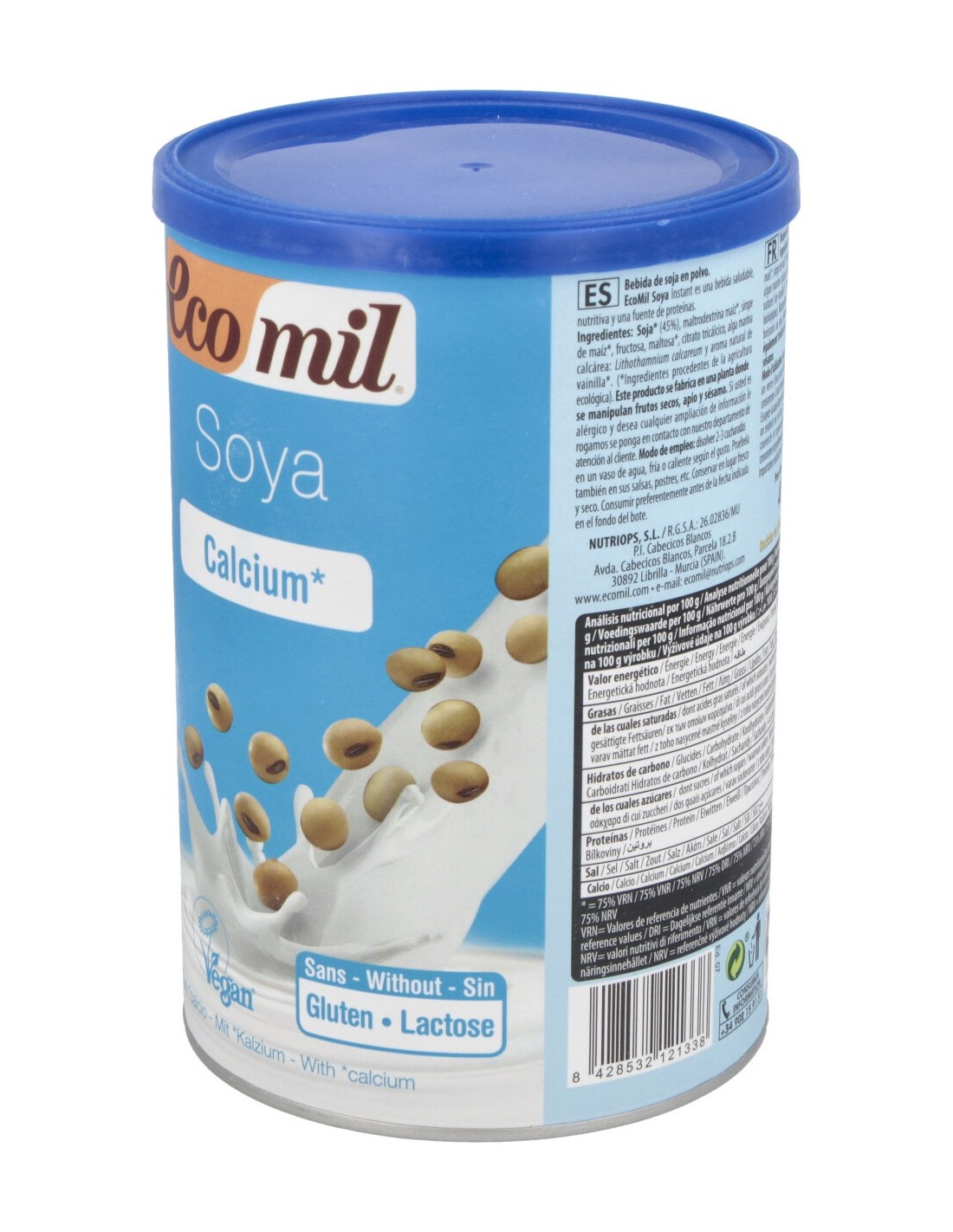 Bebida vegetal de soja bio en polvo instantáneo con calcio añadido.
