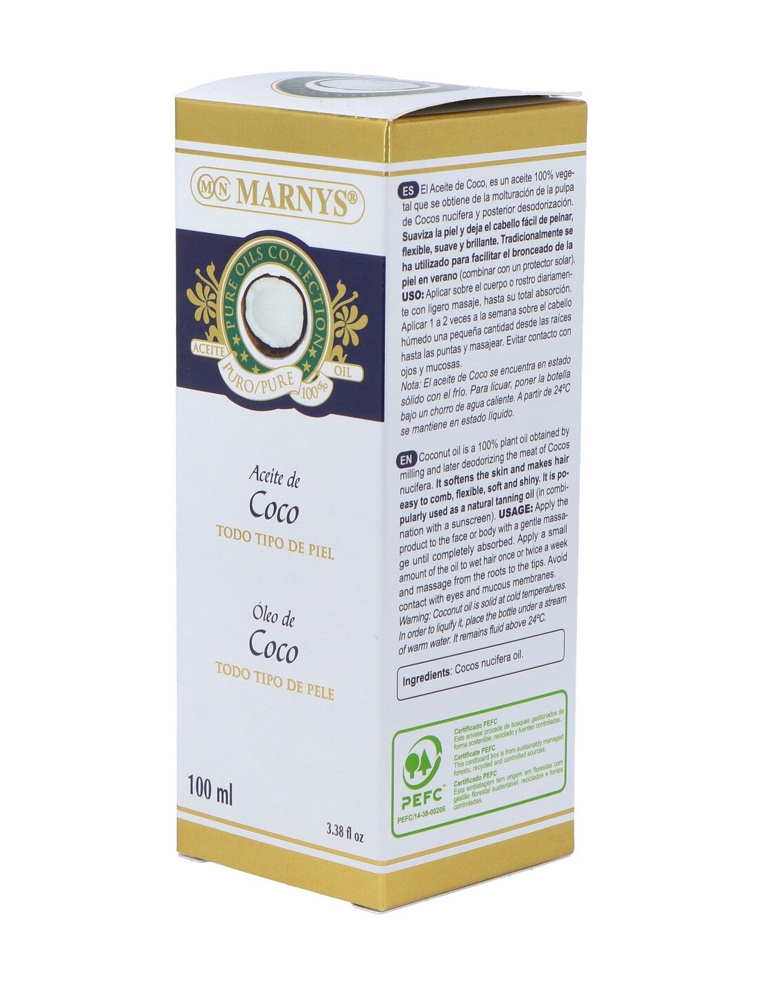 Aceite de coco indicado para uso cosmético, está compuesto principalmente por ácido Iáurico y mirístico que cuentan con propiedades que benefician la reparación de la barrera natural de la piel, su uso es recomendable luego de la exposición de la piel al sol, ayuda a revitalizar el cabello seco o con tendencia a encrespamiento, ayuda a hidratar profundamente el cabello y la piel.