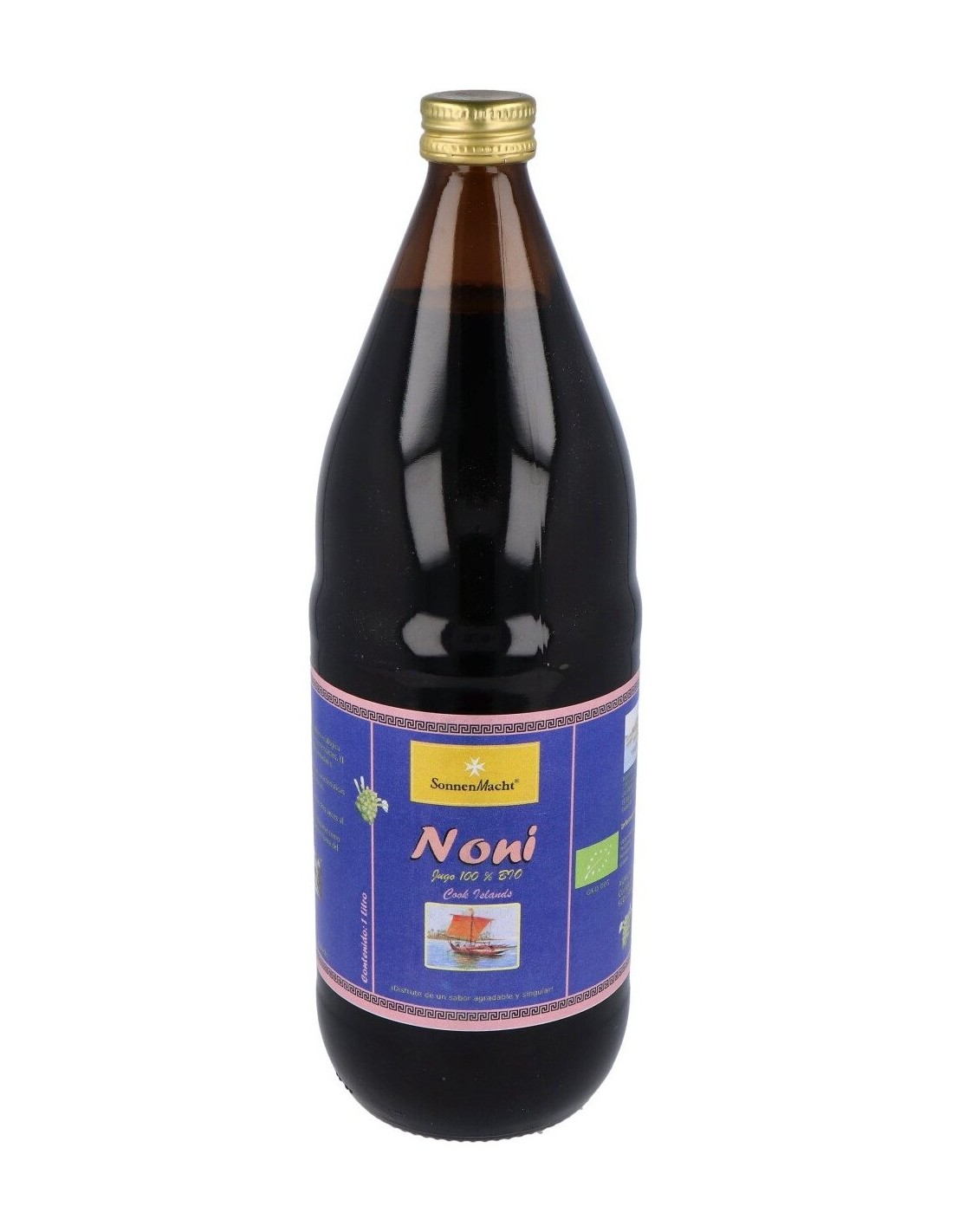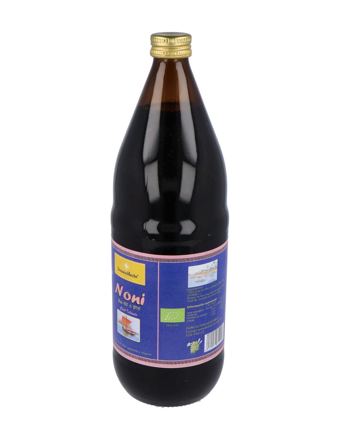 Zumo orgánico a base de la planta noni 100% biológicas. Tiene propiedades antiinflamatorias y antioxidantes. Contribuye a retrasar el envejecimiento de las células y ayuda a depurar el organismo por sus principios diuréticos. El noni es una planta originaria del sureste asiático, que contiene xeronina que ayudan a aumentar las defensas del sistema inmune. Contiene fibra que favorece la regulación del tránsito intestinal. No contiene lactosa, aditivos ni conservantes. Apto para vegetarianos y veganos.