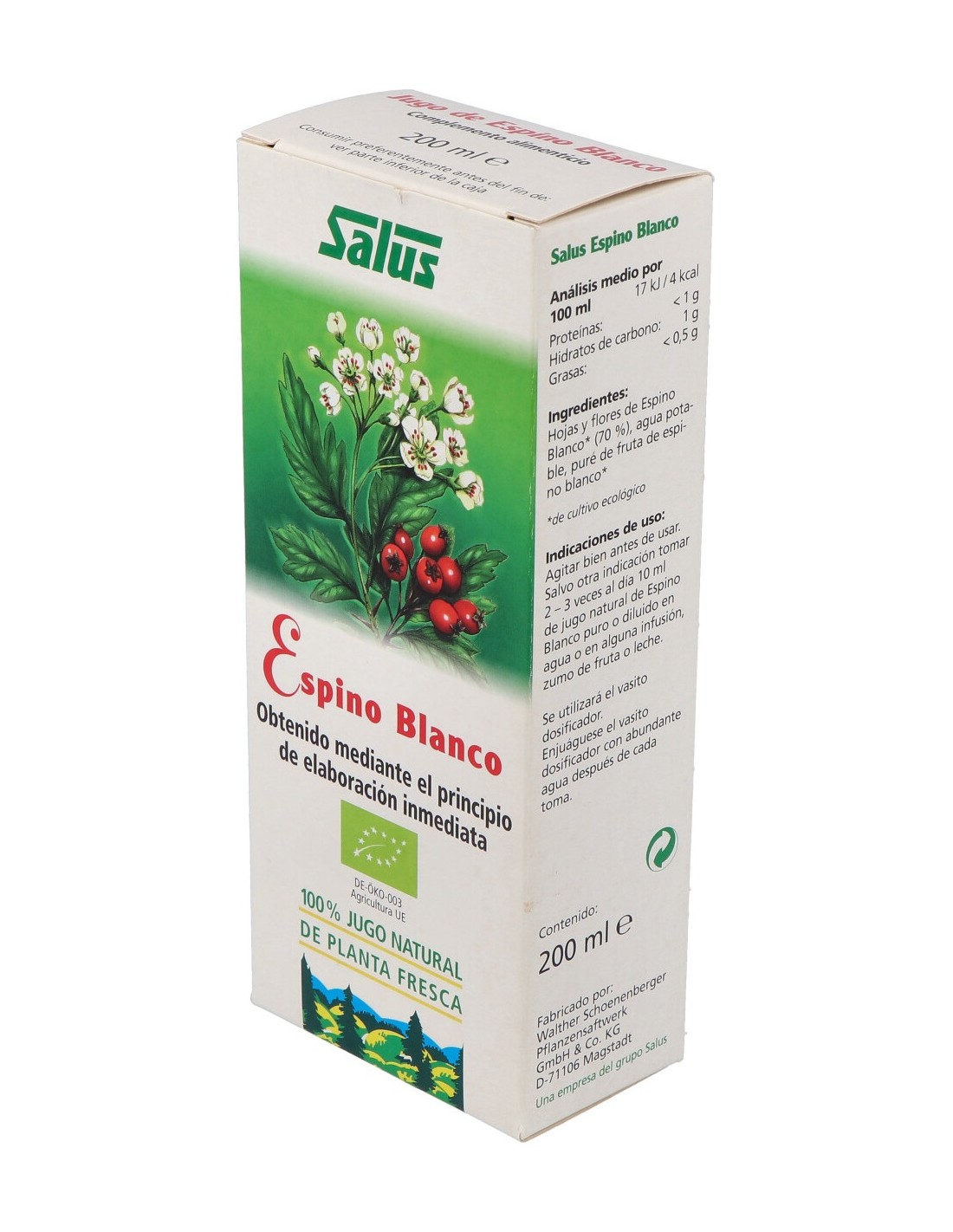 El jugo de espino blanco se obtiene por prensado de la planta fresca en su óptimo punto de maduración, por lo que ofrece el espectro completo de principios tal y como se encuentran en la planta fresca, sin alteración alguna. Contribuye a la salud del corazón y al sistema vascular.