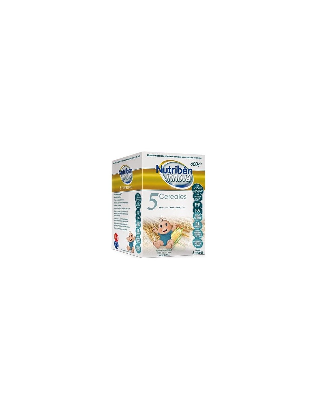 Cereales 66% (harina de trigo, harina de arroz, harina de avena, almidón de maíz y harina de centeno), maltodextrina, minerales (calcio y fósforo), vitaminas (C, niacina, E, ácido pantoténico, B1, B6, A, ácido fólico, K1, biotina, D3), Bifidobacterium lactis y aroma (vainillina).