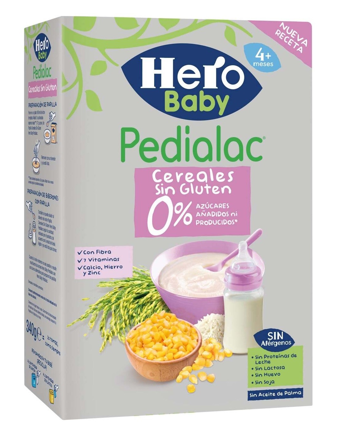 Harina de cereales sin gluten (99%) (maíz y arroz), fructooligosacáridos (FOS), minerales (calcio, zinc y hierro), aroma natural y vitaminas (C, niacina, E, B6, B1, A, ácido fólico, y D).