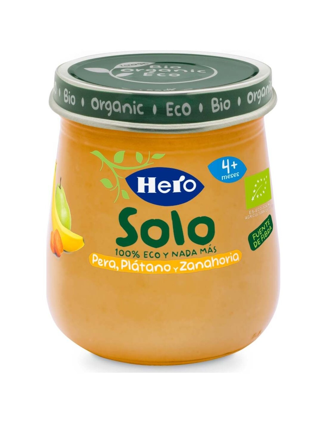 Alimento infantil a base de pera, plátano y zanahoria.