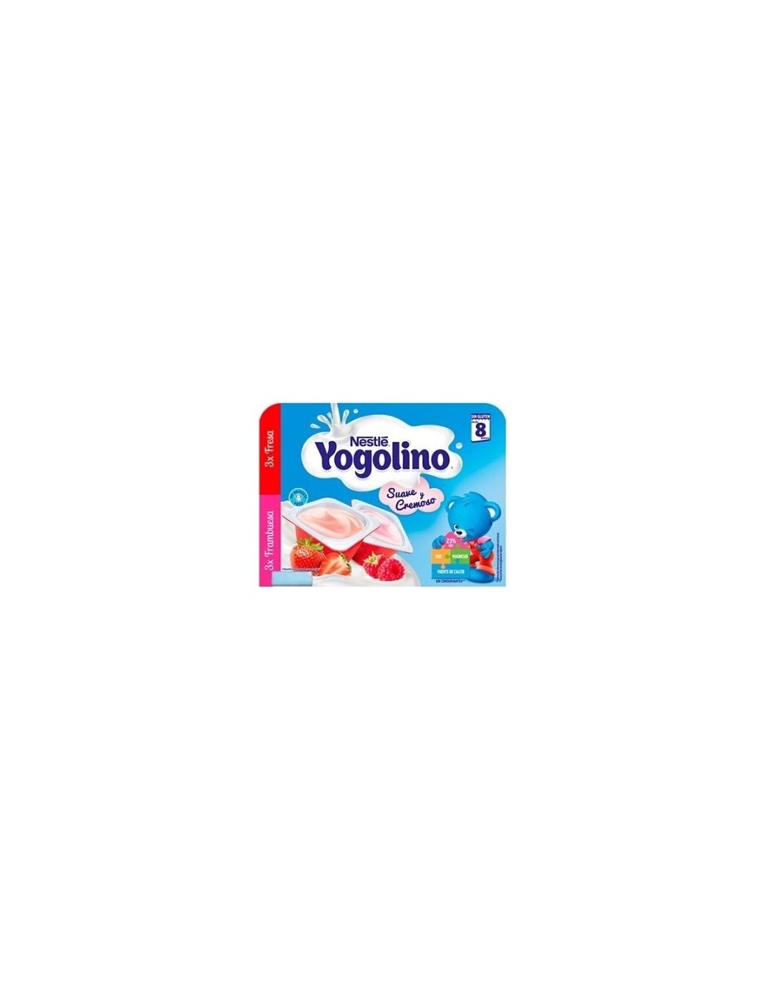 Tarrina de frambuesa Leche (80,7%), azúcar, almidón modificado de maíz, zumo de frambuesa (3,5%), maltodextrina, nata, agua, concentrado de sales minerales lácteas, sales minerales (cloruro de magnesio y sulfato de zinc), espesante (pectina y goma garrofín), almidón de patata, correctores de acidez (citrato potásico e hidróxido potásico), fermentos lácteos y aroma de frambuesa.