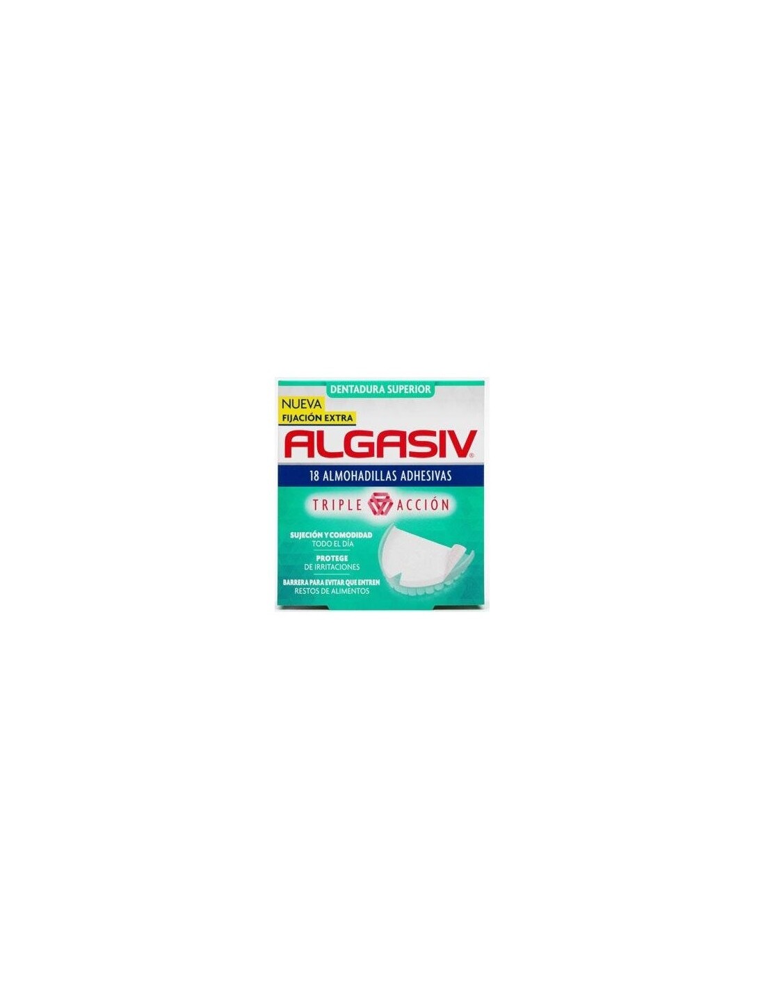 Almohadillas adhesivas para dentadura superior, producto diseñado especialmente para hacer más cómodo y fácil de usar la dentadura postiza.