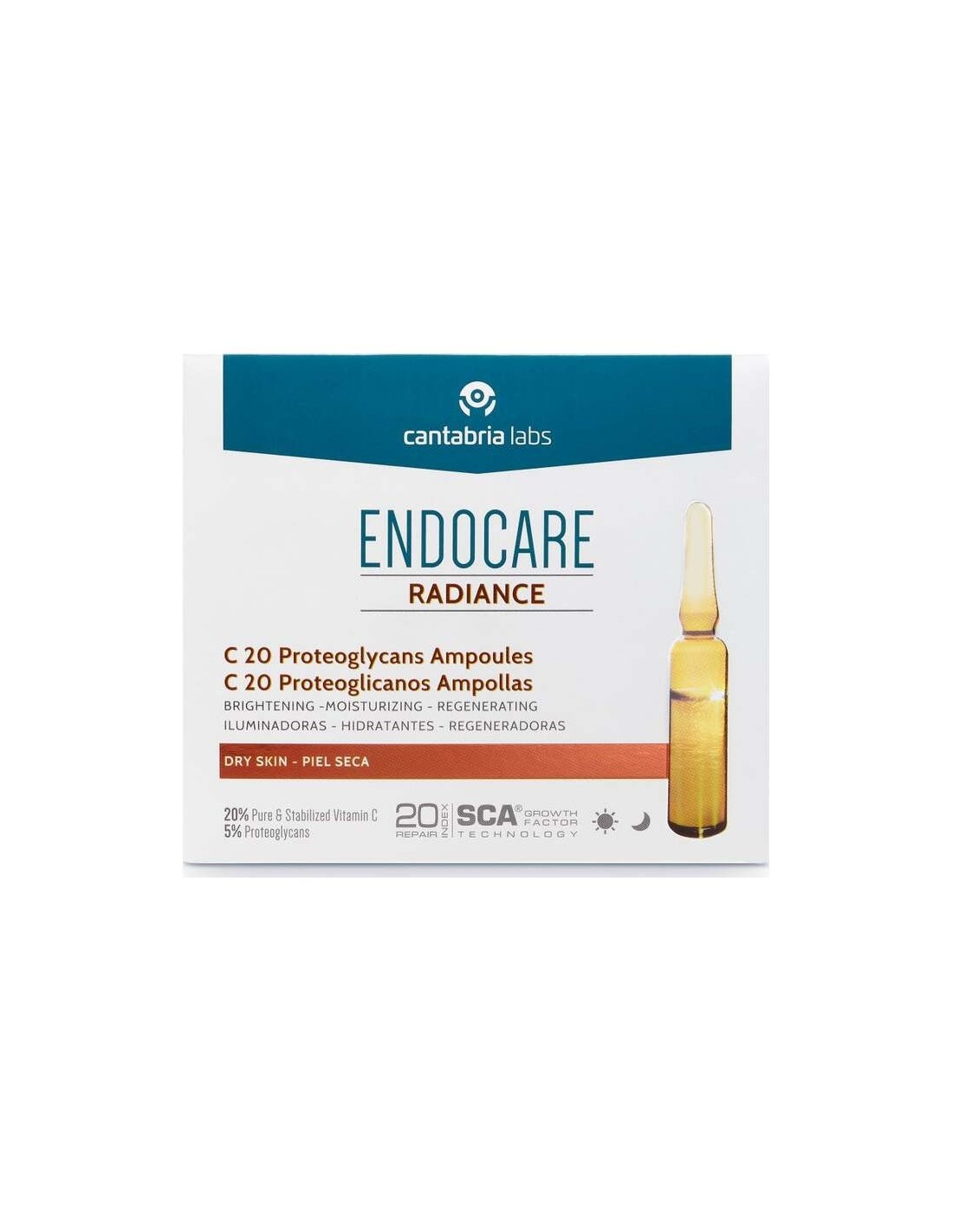 Endocare Radiance C20 Proteoglicanos Ampollas 10x2ml son ampollas intensivas de dia y noche que proporcionan un efecto iluminador, hidratante y regenerador de pieles secas. Tienen un compuesto de Vitamina C y altas concentraciones de proteoglicanos que aportan una acción antioxidante, regenerador e hidratante, y que a demás aportan un extra de luminosidad a la piel.
