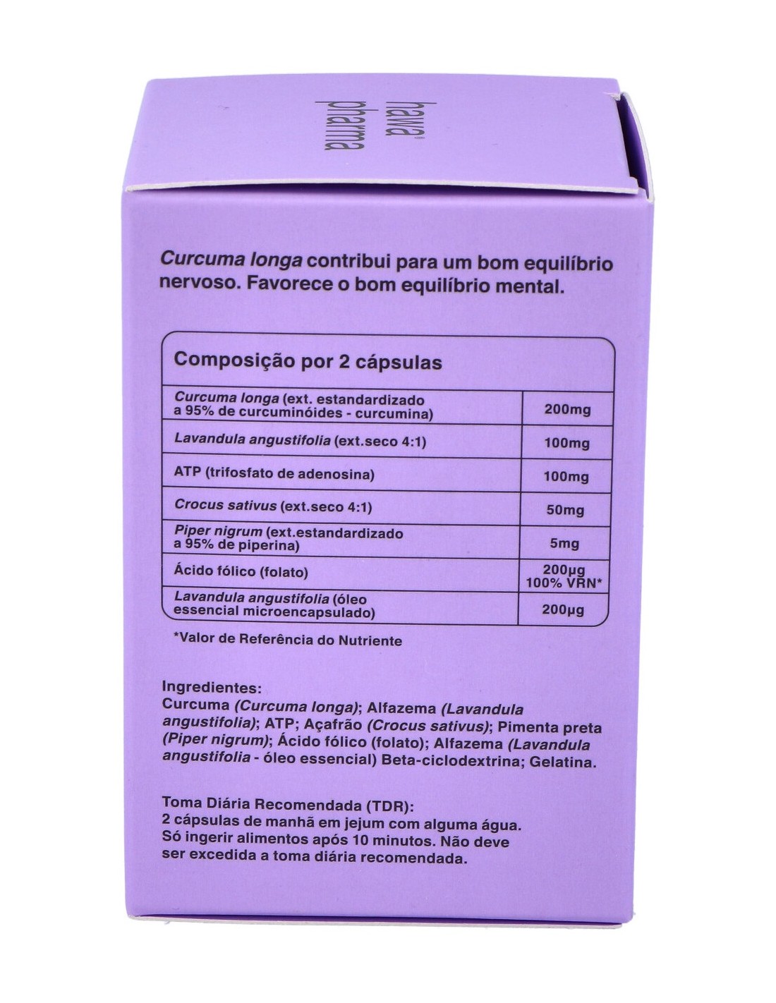 Curcuma longa: Lavandula angustifolia: ATP: gelatina: Crocus sativus: Piper nigrum: Beta-ciclodextrina: Ácido fólico (folato): Lavandula angustifolia (aceite esencial).