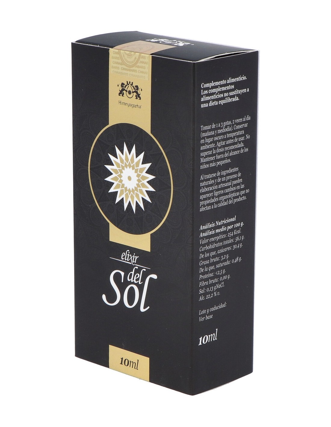 Fructosa: alcohol etílico: agua: zumo de granada (Punica granatum) [zumo de granada concentrado doble fuerza (Punica granatum), ácido ascórbico, sorbato de potasio y benzoato de sodio] : golden elixir [agua, alcohol etílico, fructosa, carbonato de potasio y esencias de naranja amarga (Citrus aurantium), limón (Citrus limonum), mandarina (Citrus nobilis), anís (Pimpinella anisum), cardamomo (Elettaria cardamomum), clavo (Syzygium aromaticum), jengibre (Zingiber officinale), pimienta negra (Piper nigrum) y cúrcuma (Curcuma longa)]: concentrados de espino blanco (Crataegus oxycantha) y bayas Goji (Lycium barbarum): aceites de pipas de calabaza (Cucurbita pepo) y sésamo (Sesamum indicum): vitamina E: aceites esenciales de cúrcuma (Curcuma longa), pimienta negra (Piper nigrum), jengibre (Zingiber officinale) y anís (Pimpinella anisum).