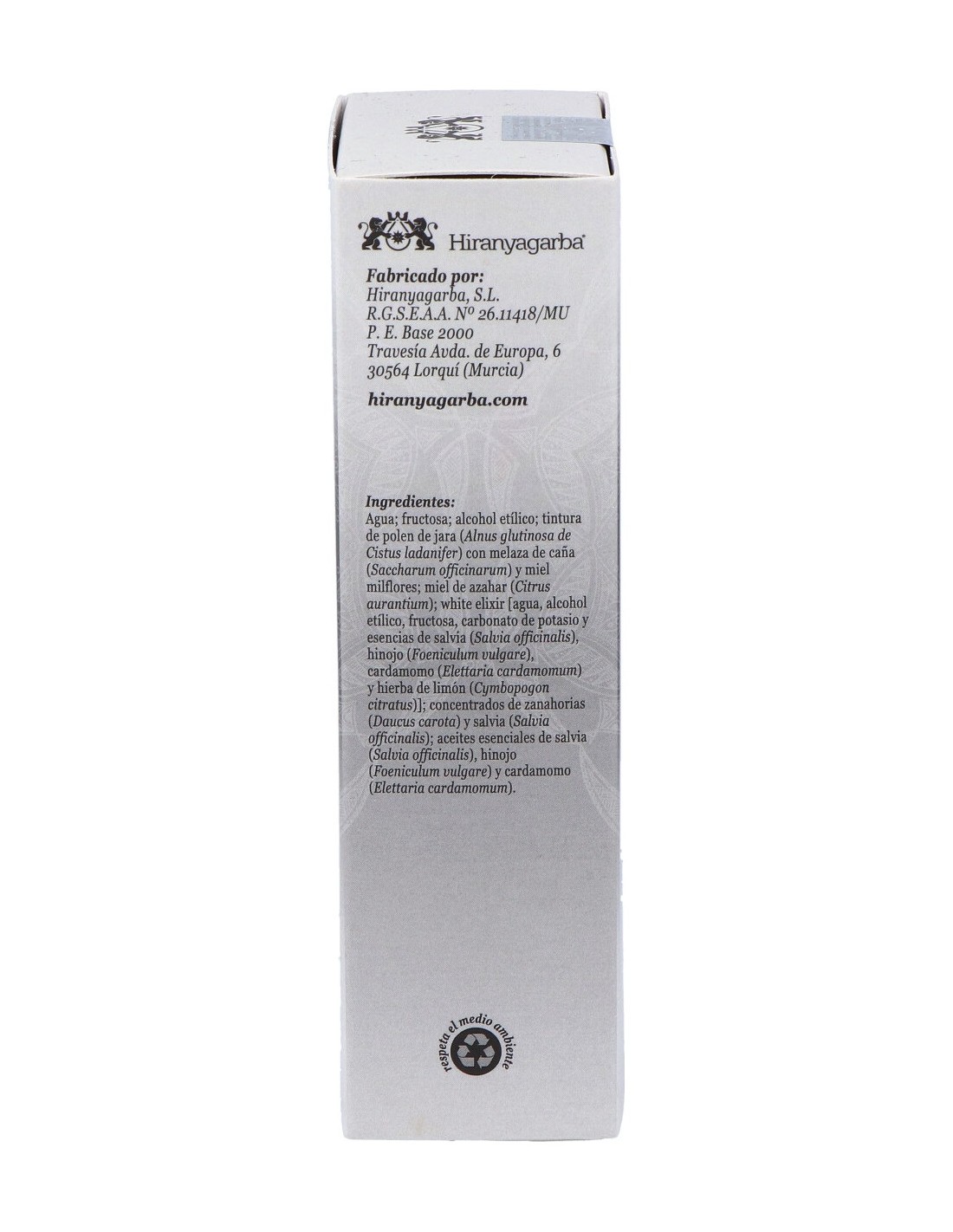 Complemento alimenticio que ayuda a potenciar el sistema inmunitario. Está elaborado con la planta principal, el Elixir Oro Blanco de Hiranyagarba, que actúa en el organismo a nivel físico y a nivel mental, aportando vitalidad y energía. La sinergia de los ingredientes del Oro Blanco actúa sobre la energía física y emocional. Ayuda a descargar la tensión y desbloquearla. Está elaborado con: Extractos de Salvia, cardamomo e hinojo, zanahoria, polen y lemongrass.