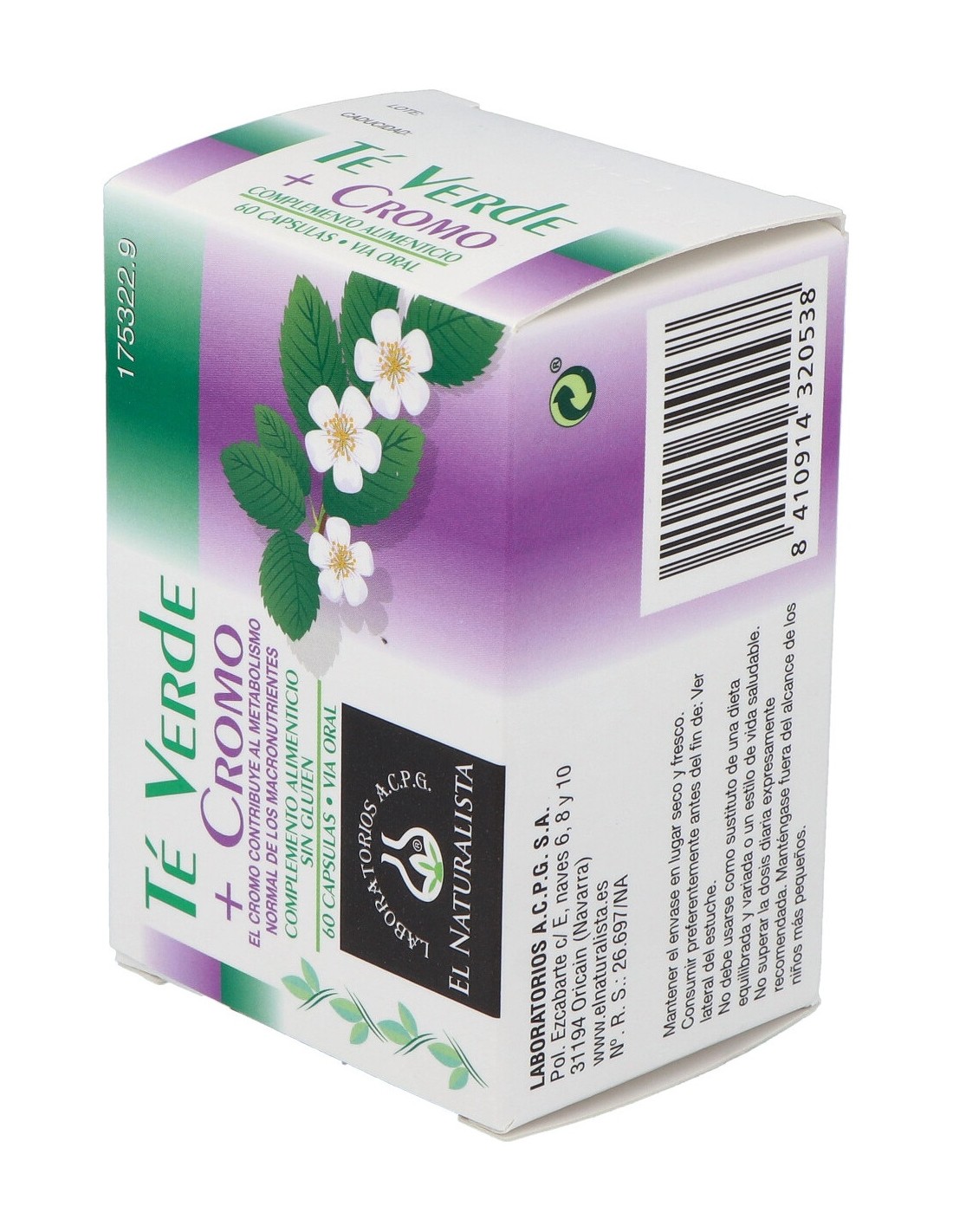 "Complemento nutricional elaborado a base de hojas biológicas de té verde y cromo. Es fuente de vitaminas, minerales y potentes antioxidantes. Favorece la actividad normal del metabolismo y es adecuado en tratamientos de descenso de peso corporal. Aporta energía y es vigorizante, con un efecto astringente suave ayuda a depurar el hígado y los riñones. Participa y contribuye a mejorar la función cerebral, la pérdida de grasa y mejorar la memoria y concentración.