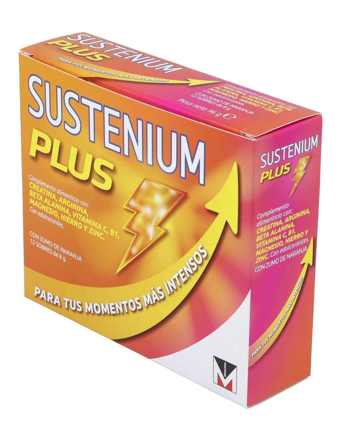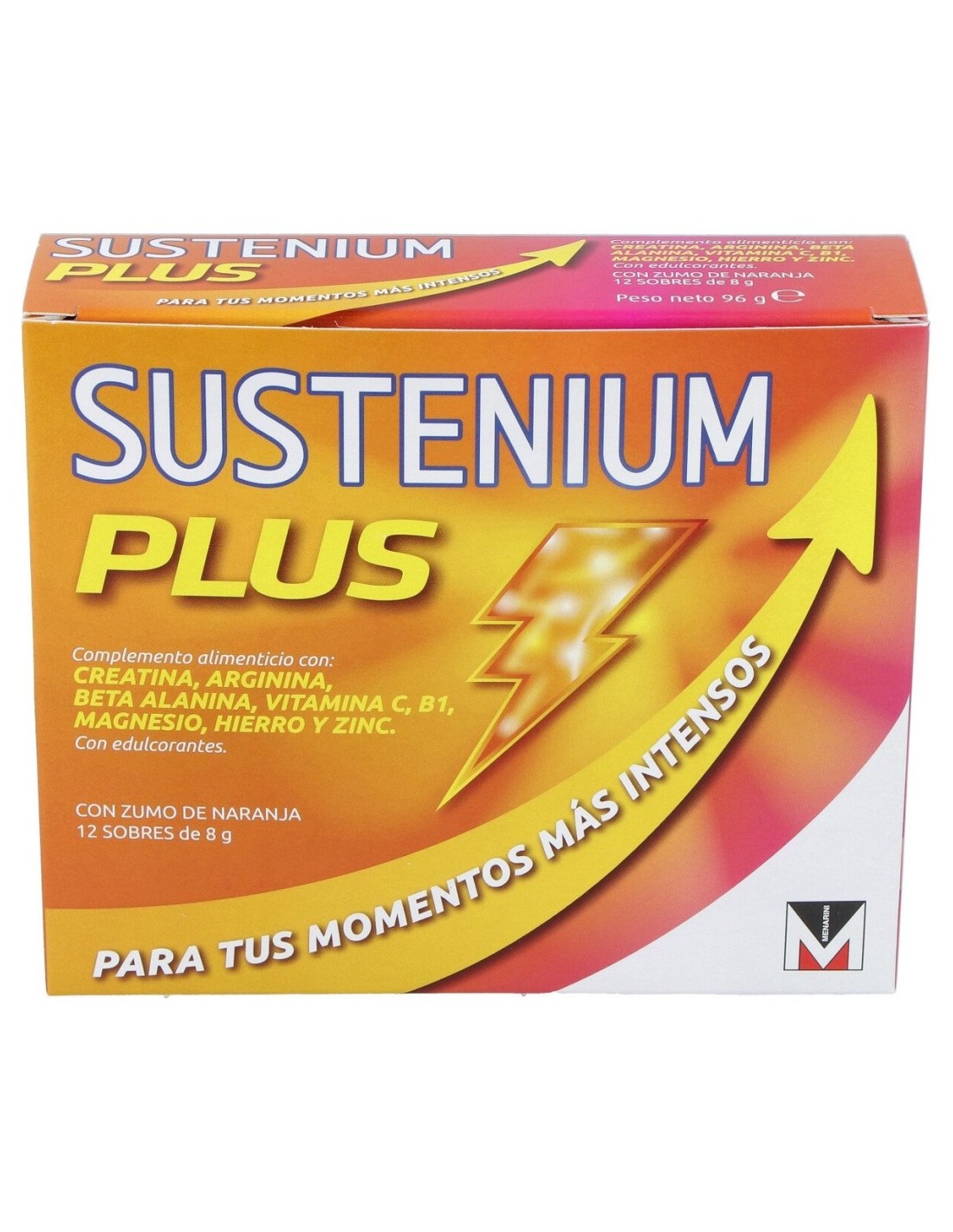 Complemento alimenticio a base de vitamina C y aminoácidos esenciales. Aporta energía para los músculos y energía corporal. Con hierro y magnesio que ayudan a reducir el cansancio y la fatiga, tiamina, que contribuye al funcionamiento energético celular normal. Con zumo de naranja, es rico en vitamina C que contribuye al funcionamiento normal del sistema inmunitario y tiene propiedades antioxidantes. Con vitamina B1, creatina, beta alanina que fortalecen los músculos. Indicado para aumentar la energía en entrenamientos o actividades en general.